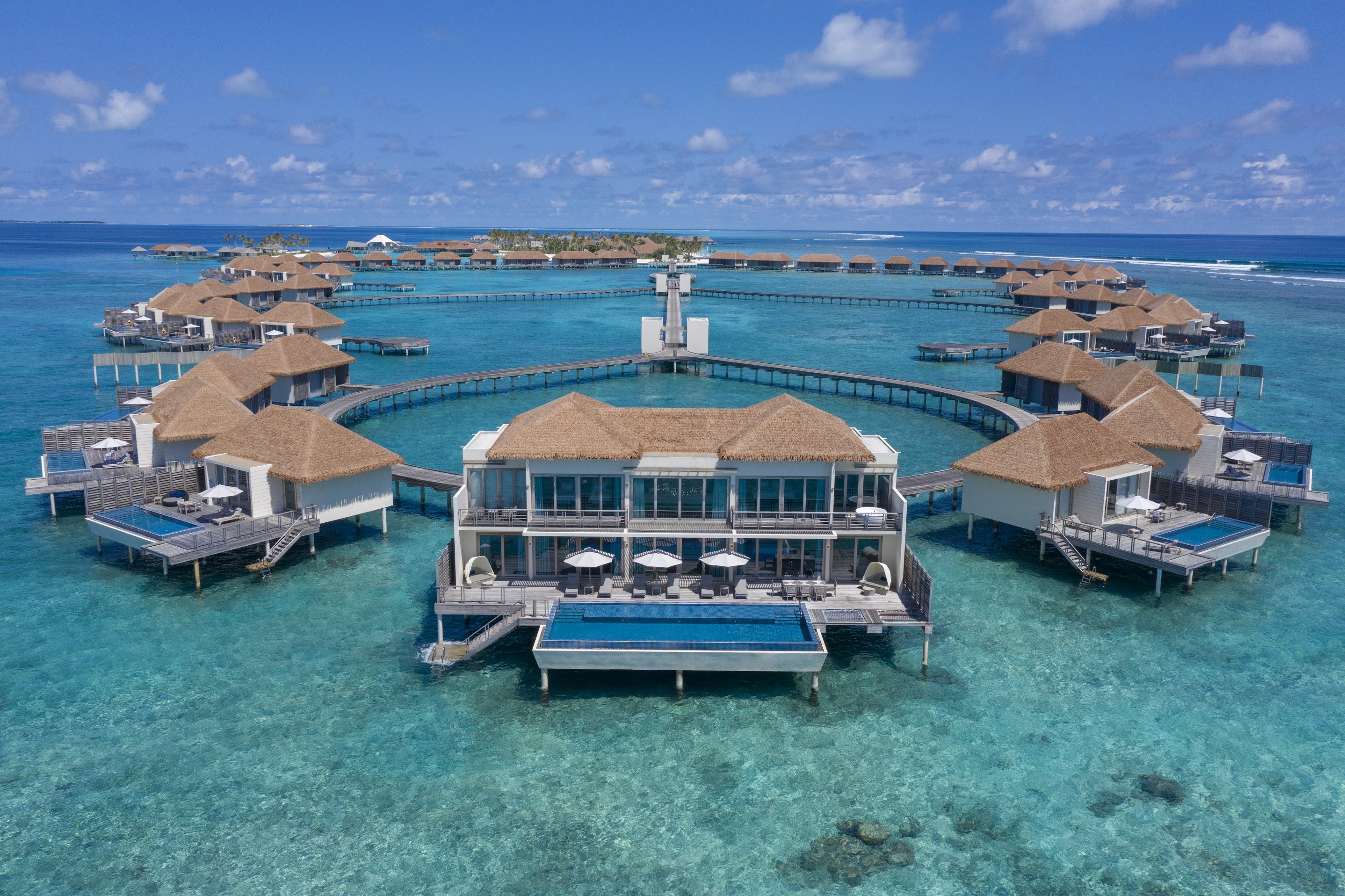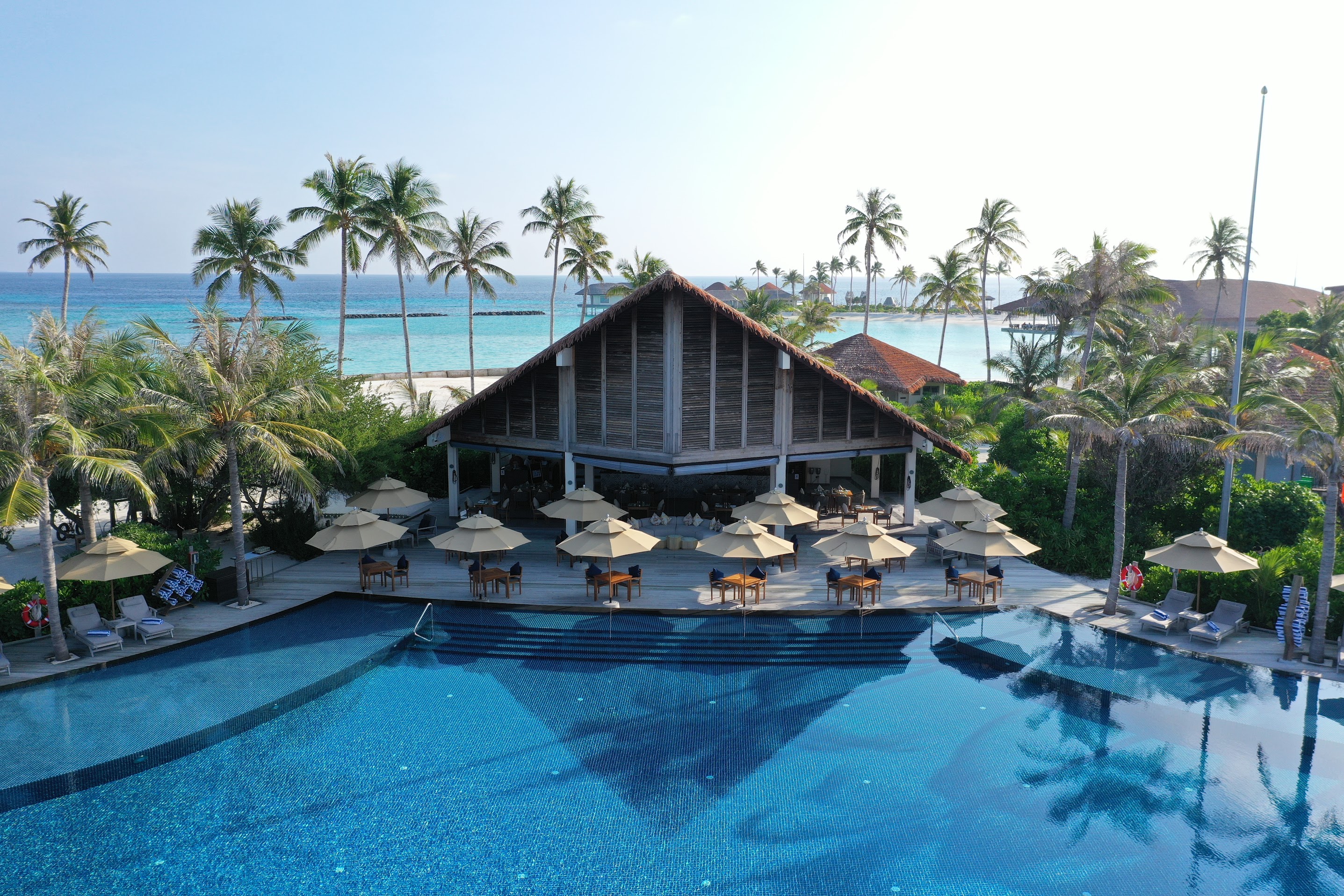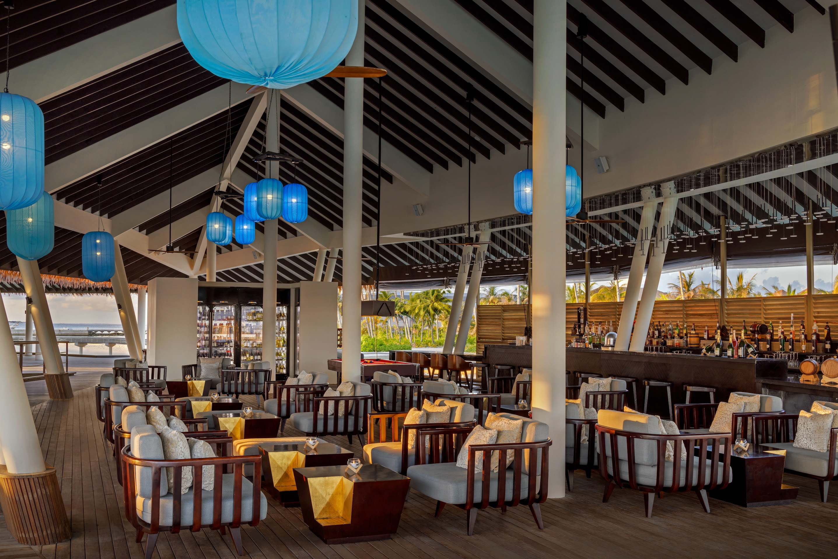 В отеле доступно проживание в том числе по системам all inclusive и premium all inclusive. Среди гастрономических локаций – японский ресторан Kabuki, расположенный на воде и предлагающий блюда в формате омакасе, а также винный погреб The Lab, где хранится более чем 3,5 тыс. бутылок со всего мира. В размещённом на воде спа-центре Blu Spa проводят процедуры на базе косметики Aromatherapy Associates. По вечерам для гостей отеля звучит живая музыка. Дайвинг-центр курорта работает под брендом Ocean Maldives.