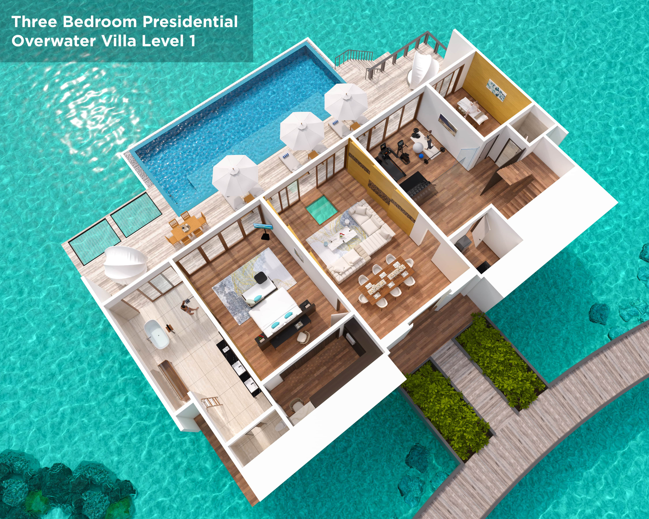 Three Bedroom Presidential Overwater Villa with Pool
