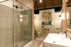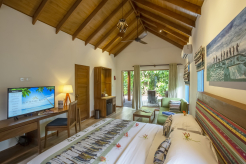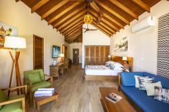 Вилла на берегу. 2 спальни с кроватями king-size, гостиная, 2 ванные комнаты (каждая с ванной), 2 душа на открытом воздухе, 2 террасы. Гостиная и спальни разделены дверями. Прямой доступ к пляжу.
