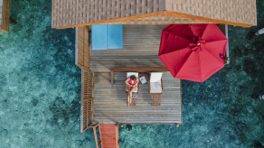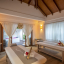Вилла на воде. 2 спальни с кроватями king-size, гостиная, 2 ванные комнаты (каждая с ванной и душевой кабиной), 2 душа на открытом воздухе, терраса с джакузи, прямой спуск к воде. Гостиная и спальни разделены дверями.