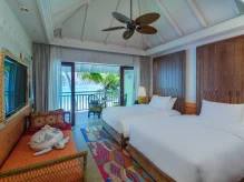 Вилла на берегу. Спальня с кроватью king-size или кроватями twin, ванная комната с ванной и душем на открытом воздухе, терраса.