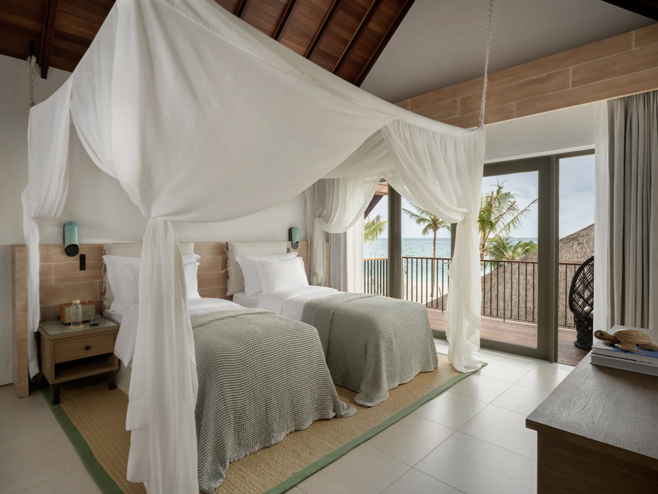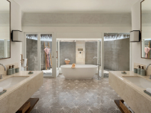 Вилла на берегу. Спальня с кроватью king-size или кроватями twin, гардеробная, ванная комната с ванной и душевой кабиной, душ на открытом воздухе, терраса.