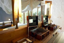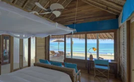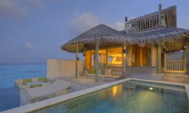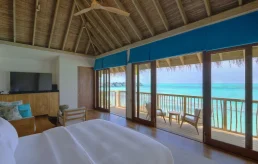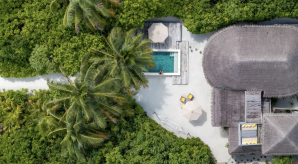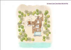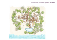 2 соединённые виллы на берегу. 2 спальни с кроватями king-size или кроватями twin, гостиная с обеденной зоной, гардеробная, 2 ванные комнаты (одна – с ванной и душем, другая – с душевой кабиной), гостевой туалет, 2 душа на открытом воздухе, частный сад, терраса с бассейном, терраса на крыше. Гостиная и спальни разделены дверями.