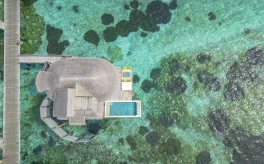 Вилла на воде. Спальня с кроватью king-size или кроватями twin, гардеробная, ванная комната с ванной, гостевой туалет, душ на открытом воздухе, терраса с обеденной зоной, бассейном и прямым спуском к воде, терраса на крыше.