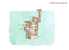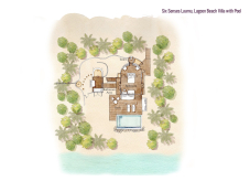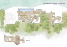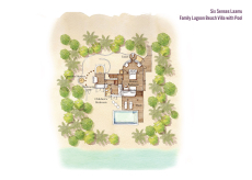 2 соединённые виллы на берегу. 2 спальни с кроватями king-size или кроватями twin, детская спальня, гостиная с обеденной зоной, кухня, 2 гардеробные, 3 ванные комнаты (две – с ванной и душем, одна – с душевой кабиной), 3 гостевых туалета, 2 душа на открытом воздухе, терраса с бассейном и беседкой, терраса на крыше с обеденной зоной. Гостиная и спальни разделены дверями.