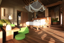 Вилла на воде. Спальня с кроватью king-size или кроватями twin, гардеробная, ванная комната с ванной, гостевой туалет, душ на открытом воздухе, терраса с обеденной зоной, гамаком над водой и прямым спуском к воде, терраса на крыше.