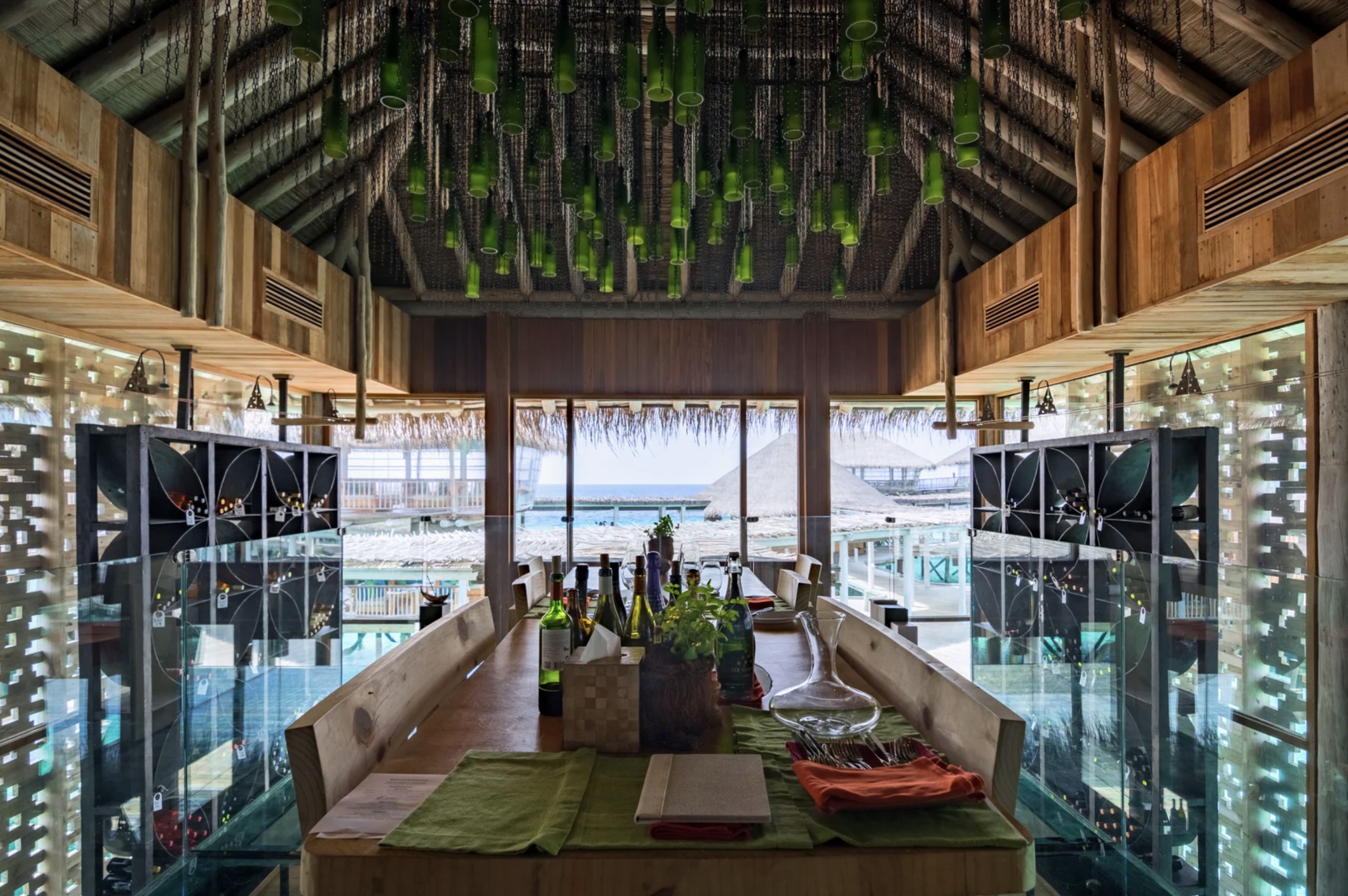 90 % инфраструктуры расположено на воде: дайвинг-центр, бутик, ресепшен, несколько ресторанов. А также Altitude Cellar & Deli – шестиметровая стеклянная башня с винотекой, насчитывающей 400 марок вина, и Ice & Chocolate Studio – собственное производство шоколадных батончиков и мороженого. Ресторан средиземноморской кухни Leaf находится на острове. Он стоит на сваях над органическими садами, где выращивают овощи и фрукты. В нём действует возрастное ограничение – с 12 лет. В спа проводят процедуры с косметикой брендов The Organic Pharmacy и Subtle Energies, а также аюрведические ритуалы. В отеле действует большой детский клуб. Есть возможность заняться сёрфингом под руководством тренеров из всемирно известной компании Tropicsurf.