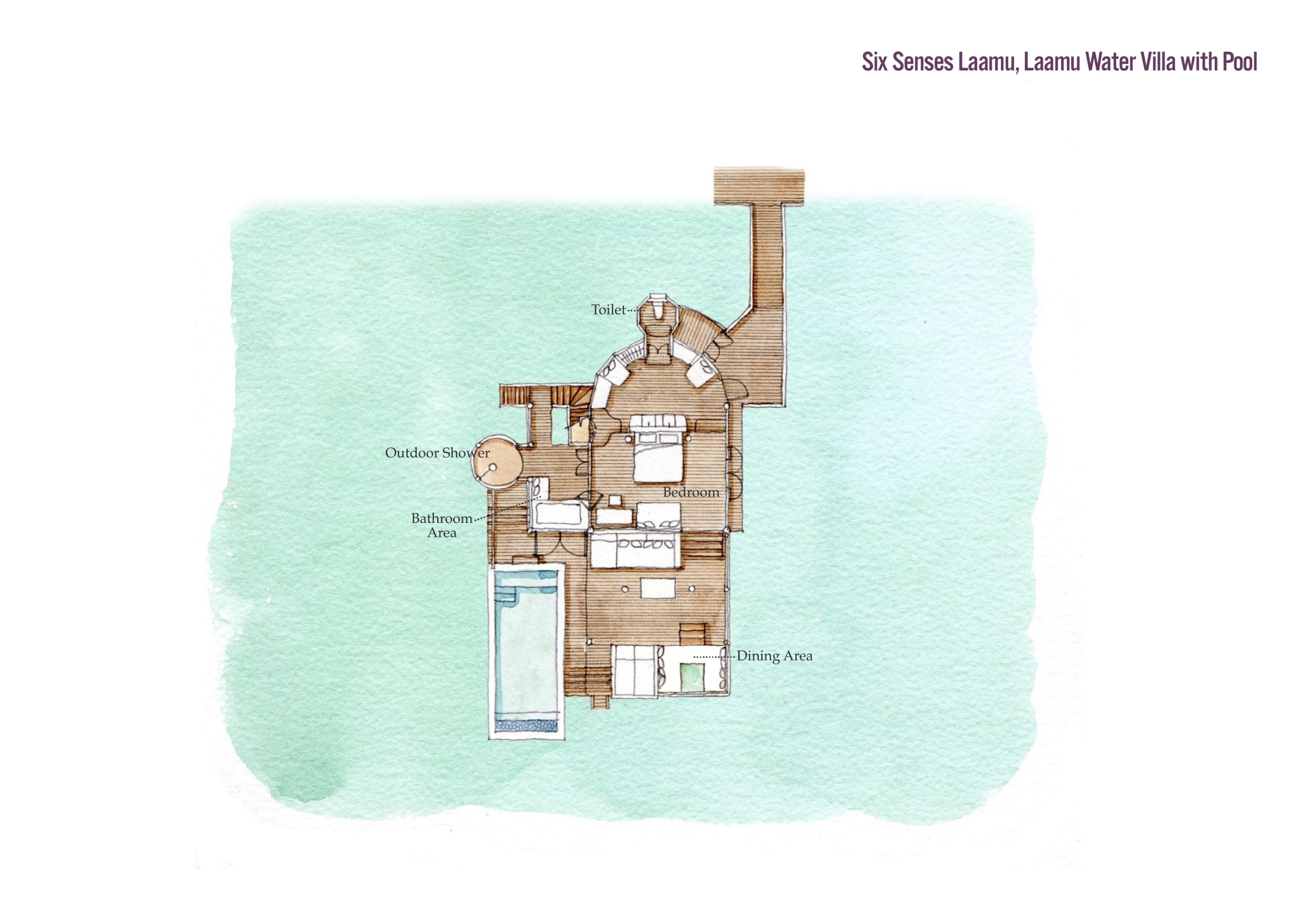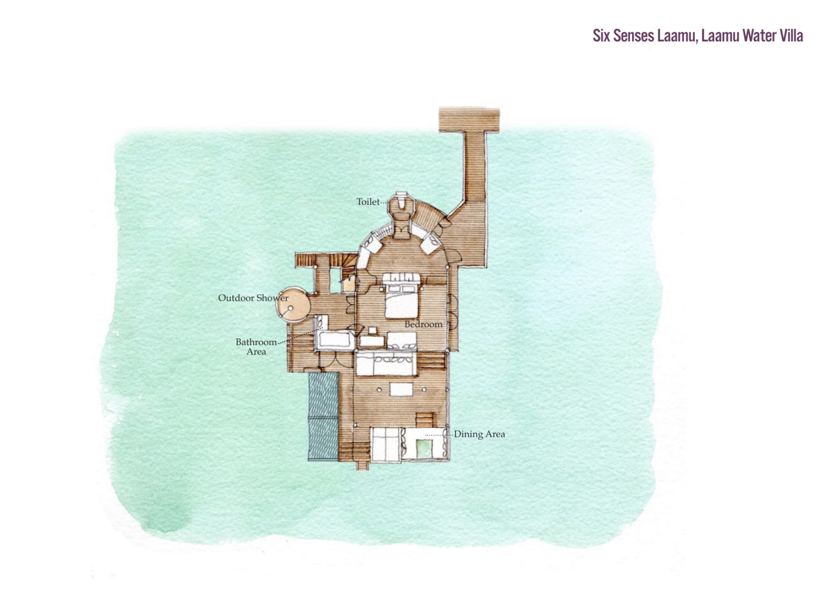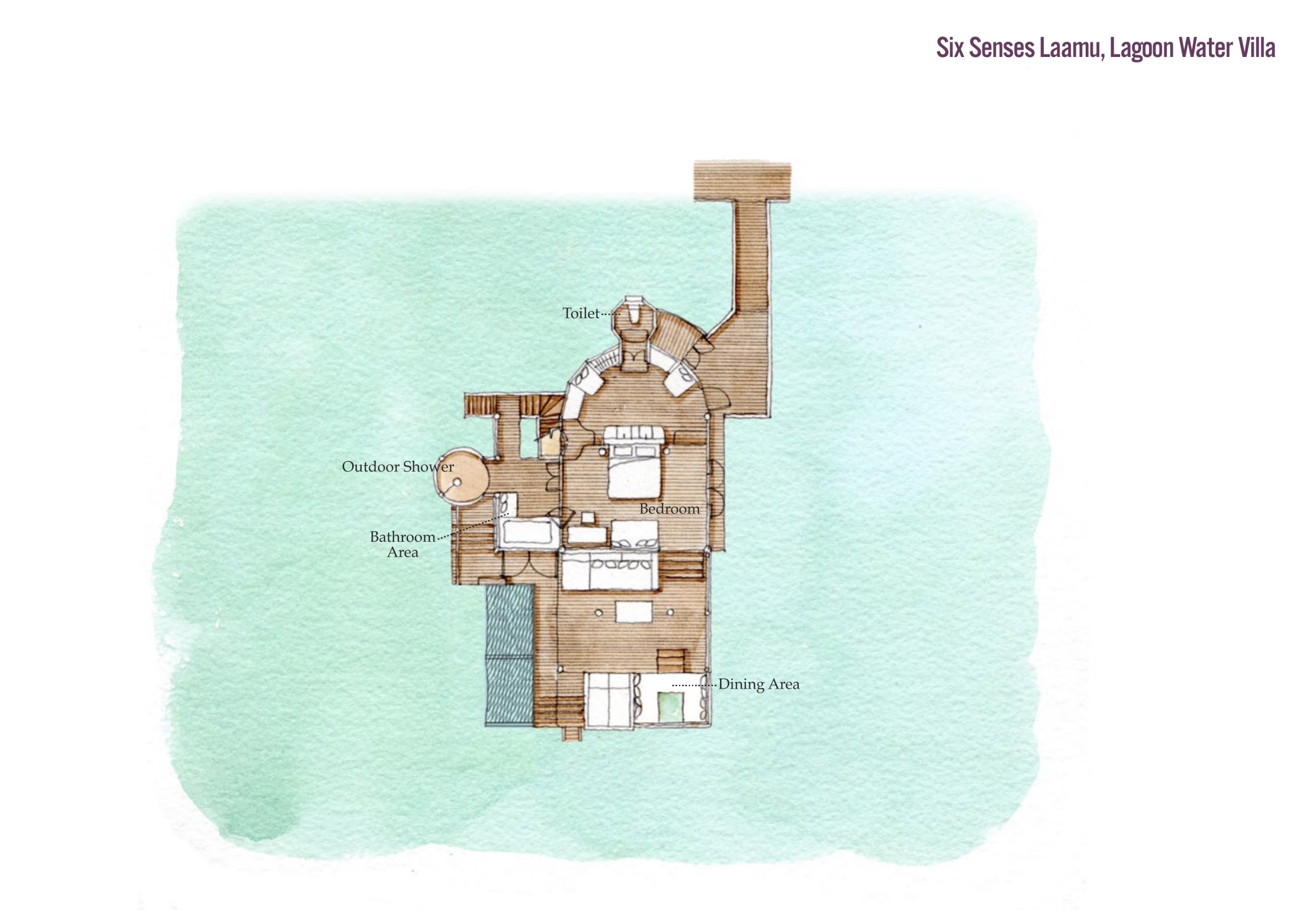 Вилла на воде. Спальня с кроватью king-size или кроватями twin, гардеробная, ванная комната с ванной, гостевой туалет, душ на открытом воздухе, терраса с обеденной зоной, бассейном и прямым спуском к воде, терраса на крыше.