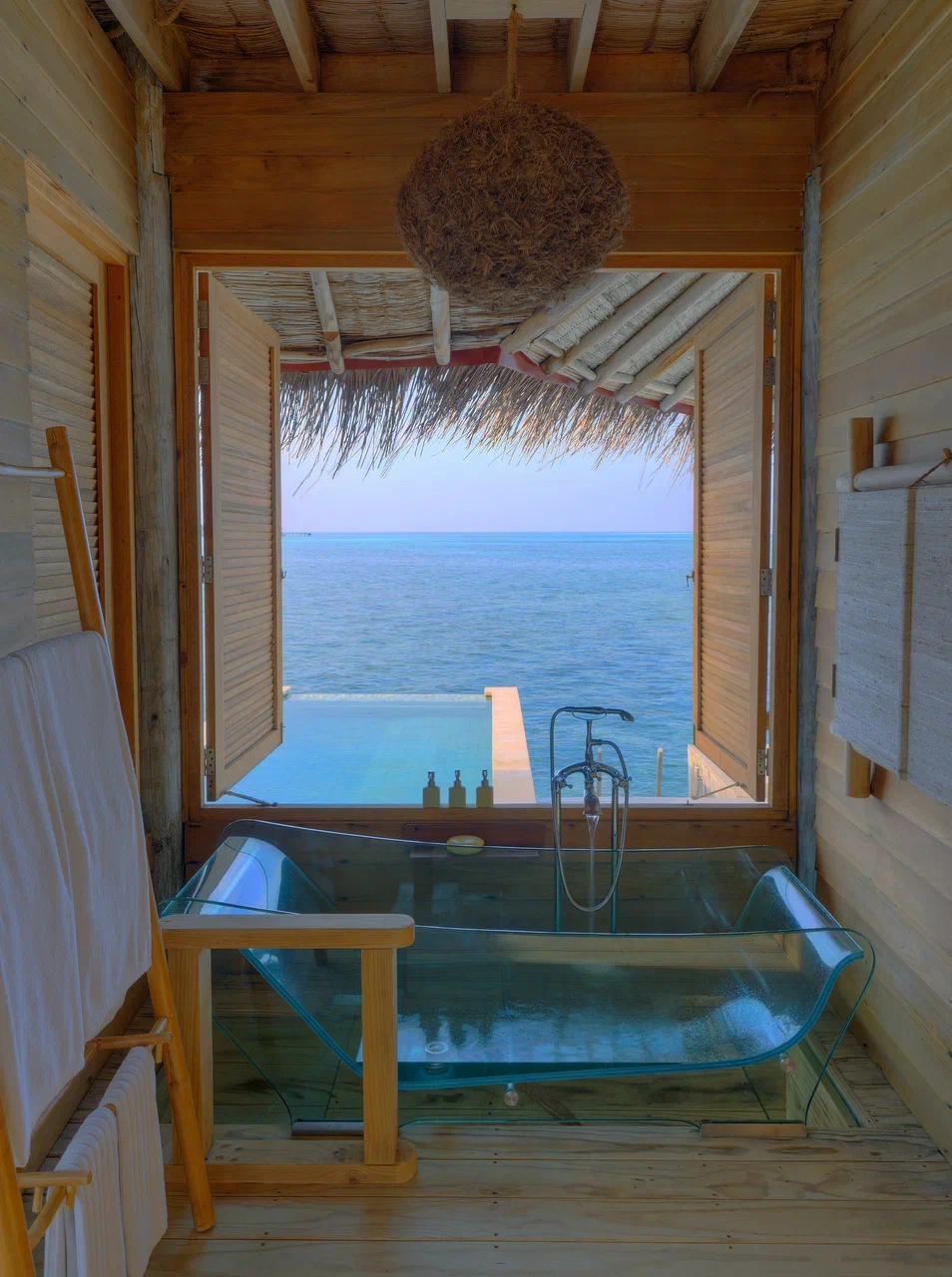Вилла на воде. Спальня с кроватью king-size или кроватями twin, гардеробная, ванная комната с ванной, гостевой туалет, душ на открытом воздухе, терраса с обеденной зоной, гамаком над водой и прямым спуском к воде, терраса на крыше.