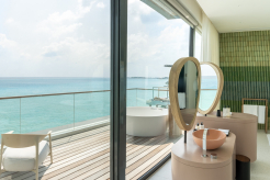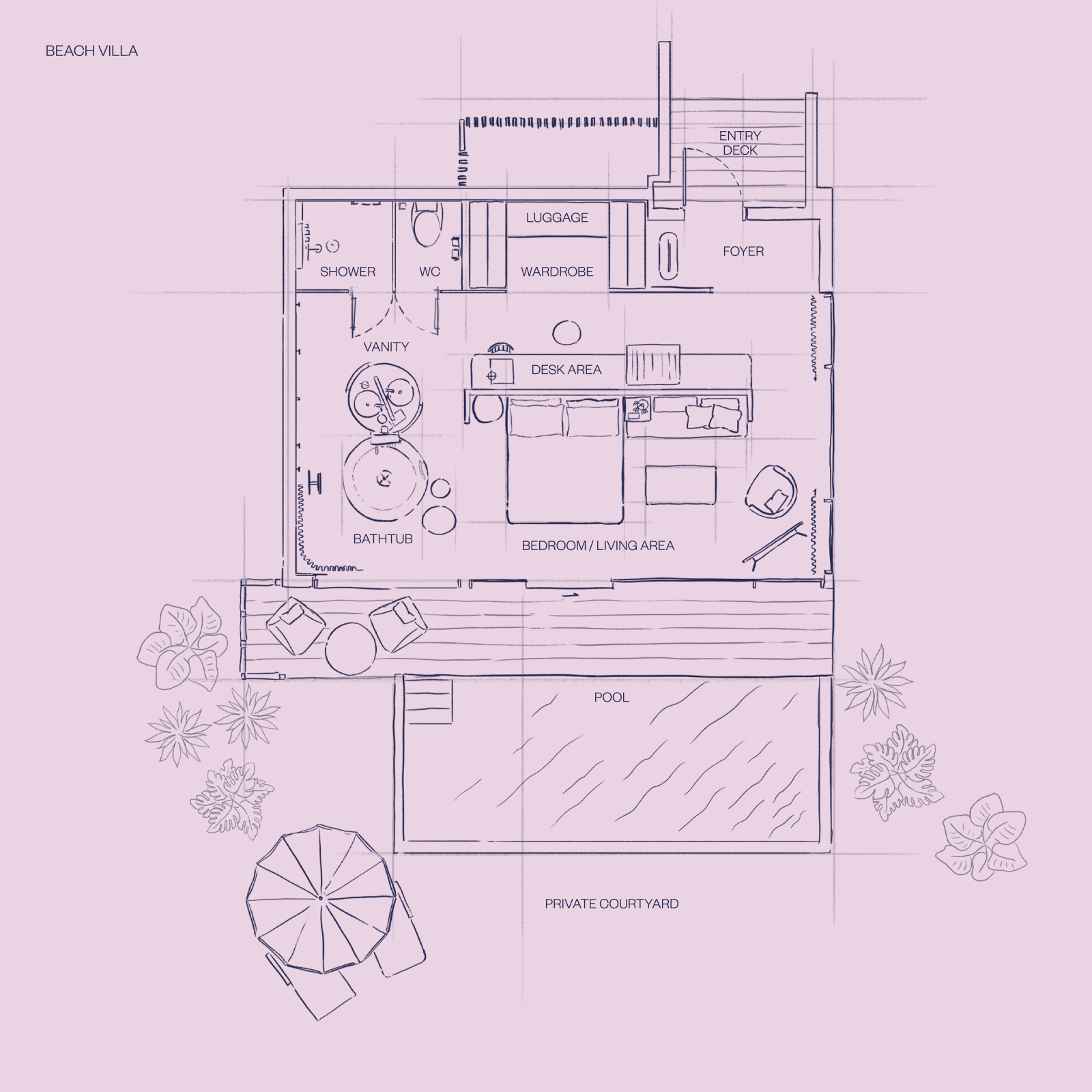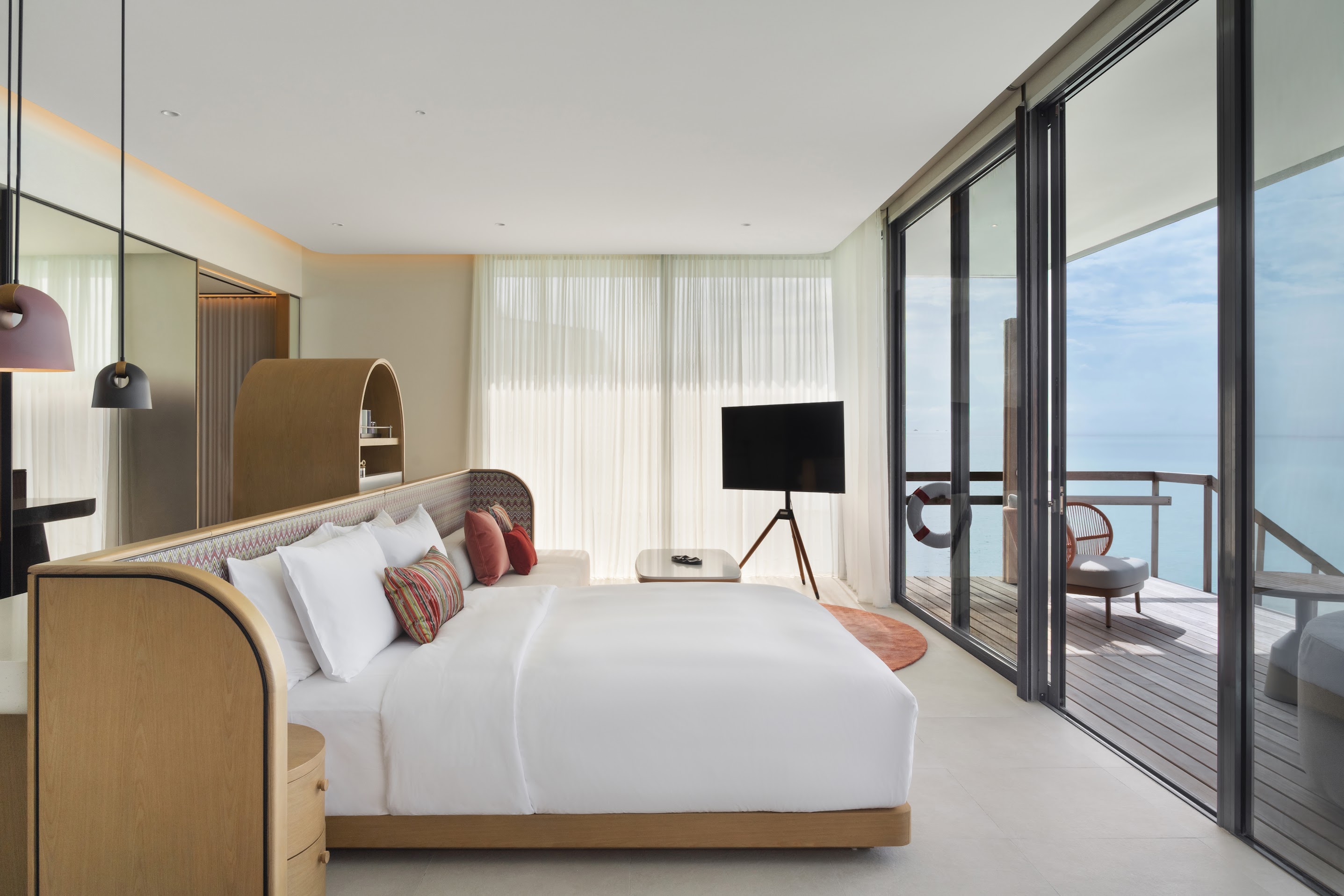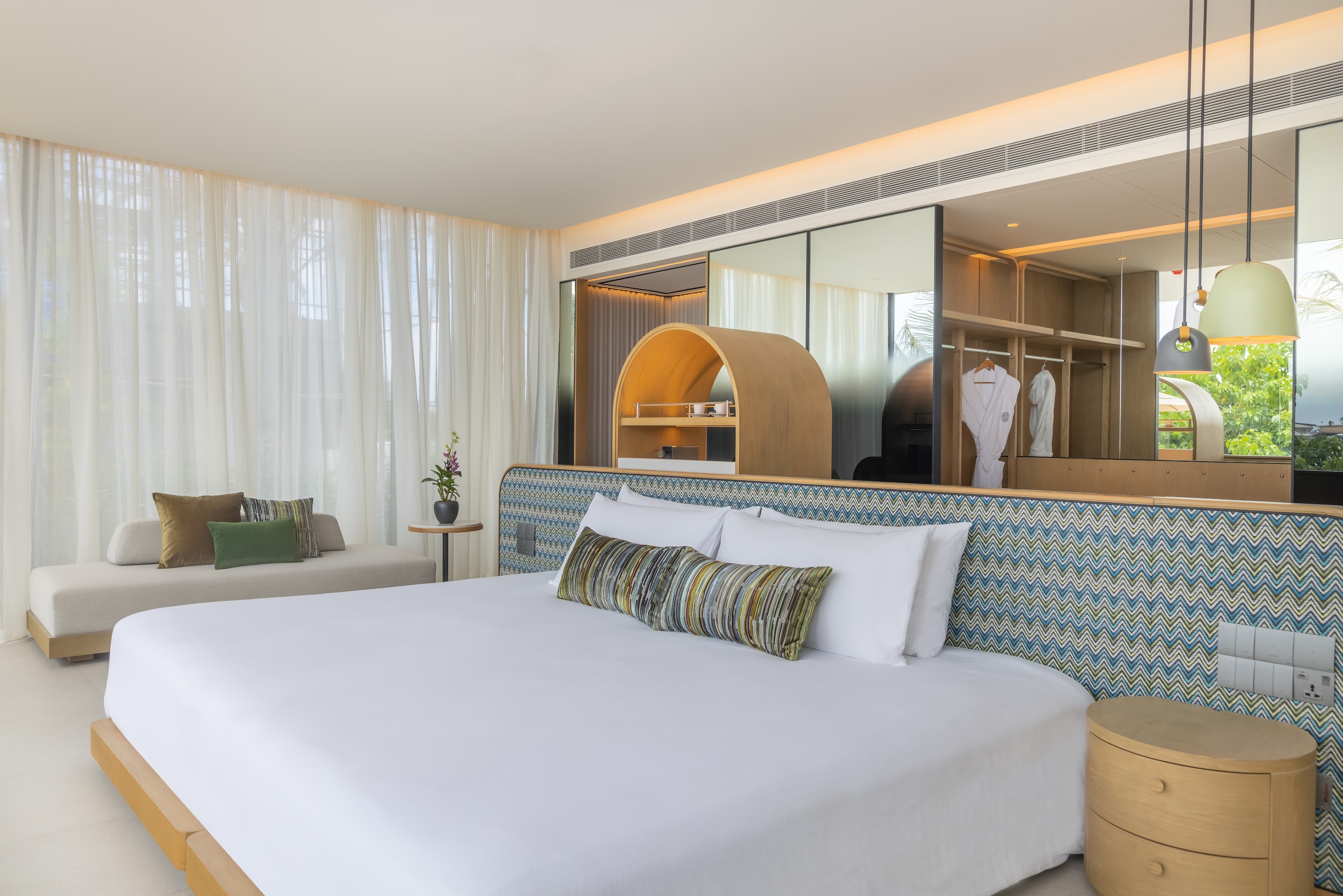 Вилла на берегу. Спальня с кроватью king-size или кроватями twin, гостиная зона, гардеробная, ванная комната открытой планировки с ванной и душевой кабиной, терраса с бассейном.