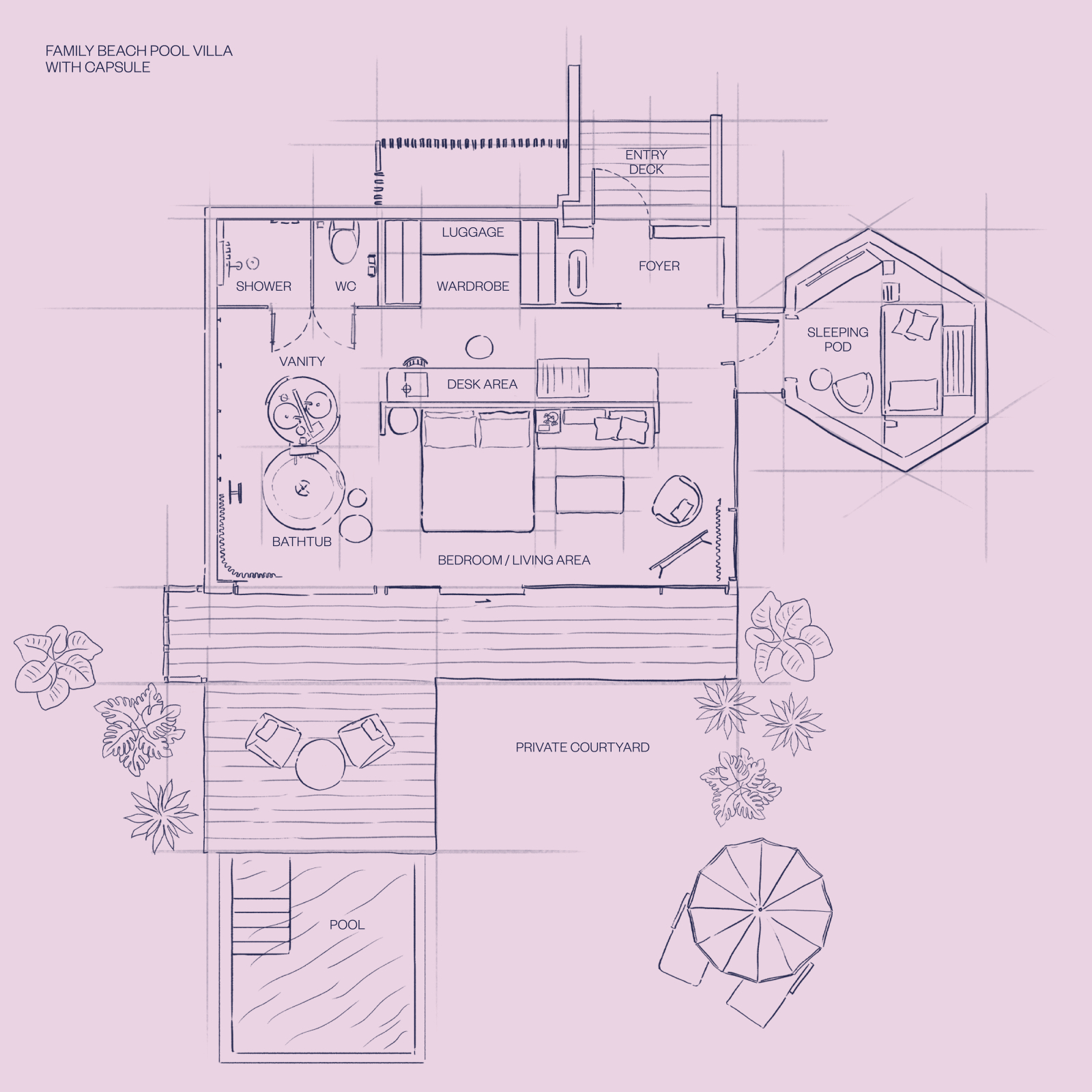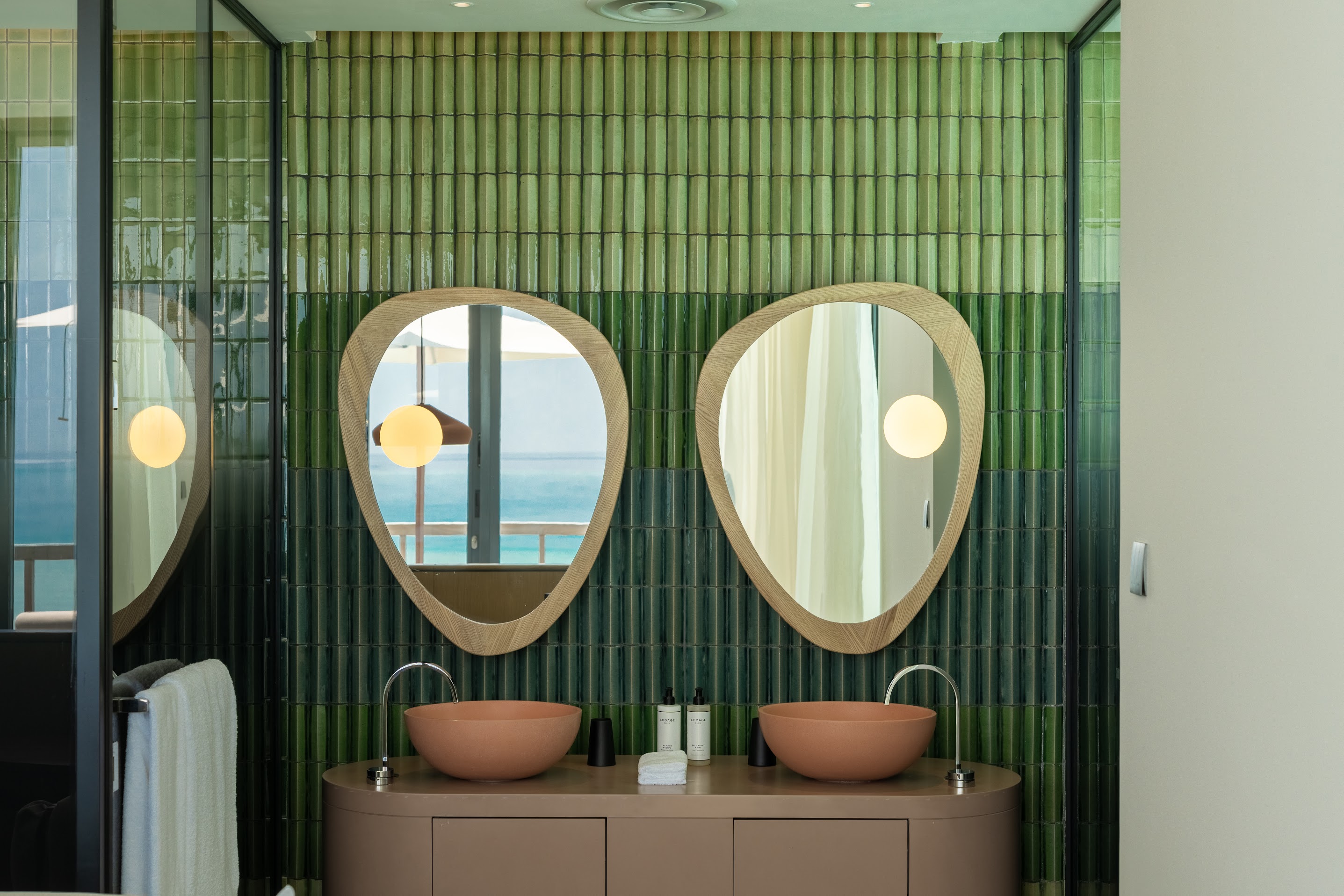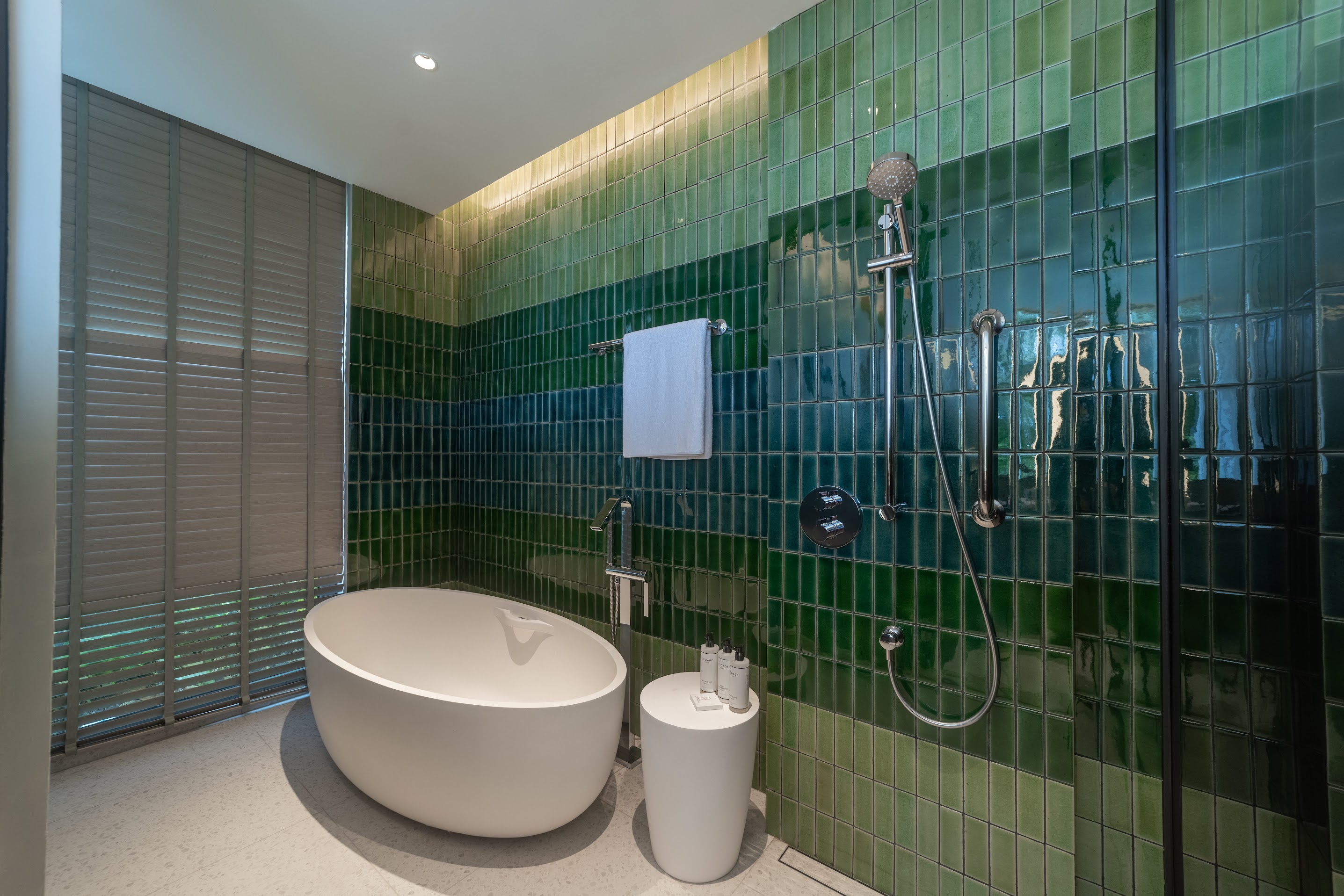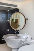 Вилла на берегу. Спальня с кроватью king-size или кроватями twin, гостиная зона, гардеробная, ванная комната открытой планировки с ванной и душевой кабиной, терраса с бассейном.