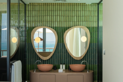 Вилла на берегу. Спальня с кроватью king-size и гостиной зоной, детская спальня с двухъярусной кроватью, гардеробная, ванная комната открытой планировки с ванной и душевой кабиной, терраса с бассейном.
