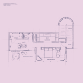 На 1-м этаже: спальня с кроватями twin, гостиная с обеденной зоной, кухня, гардеробная, ванная комната с ванной и душевой кабиной, гостевой туалет, 2 душа на открытом воздухе, терраса с бассейном и беседкой, прямой спуск к воде. Гостиная и спальня разделены дверью.