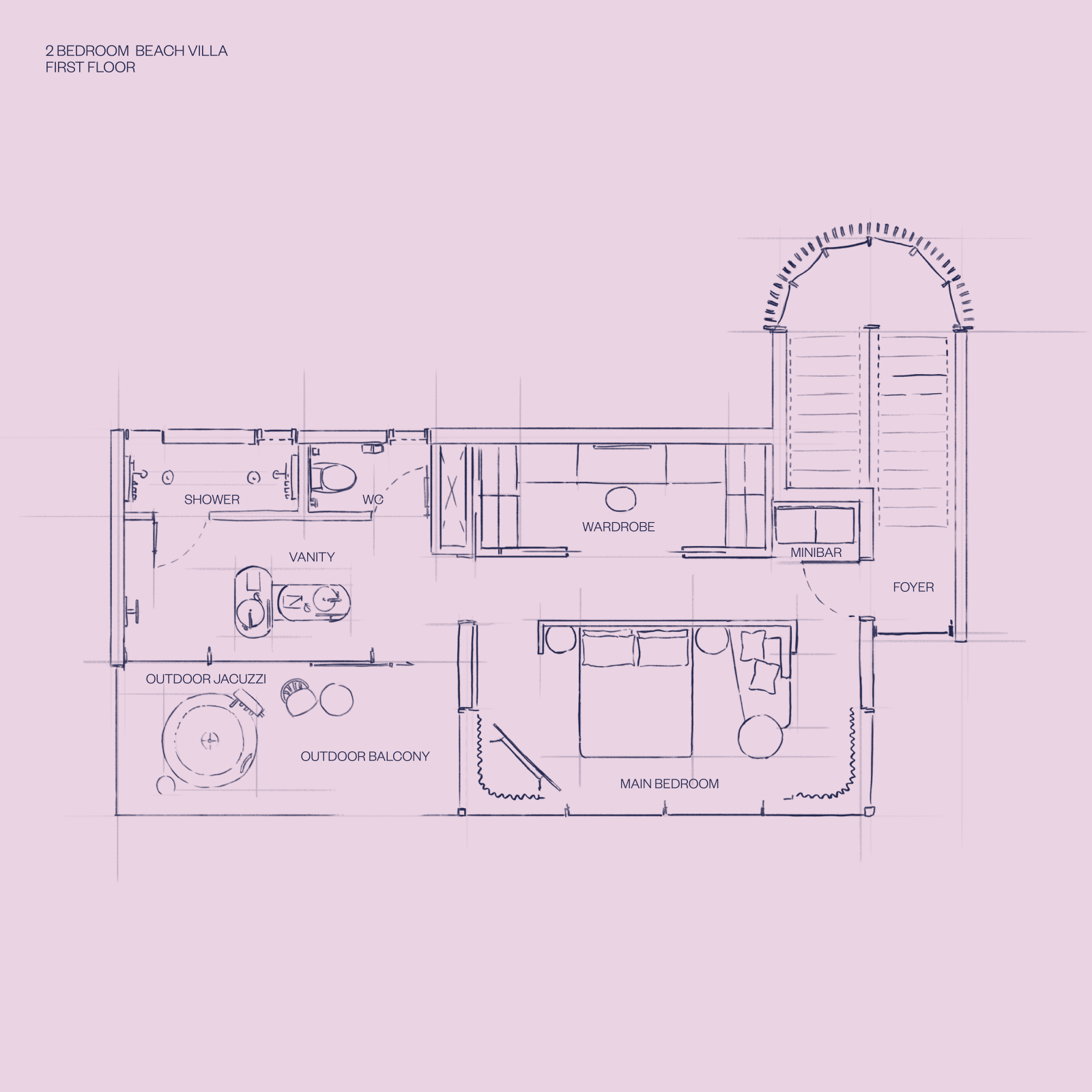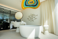 На 2-м этаже: спальня с кроватью king-size и гостиной зоной, гардеробная, ванная комната с душевой кабиной, 2 балкона (один – с джакузи на открытом воздухе, другой – с зоной отдыха).