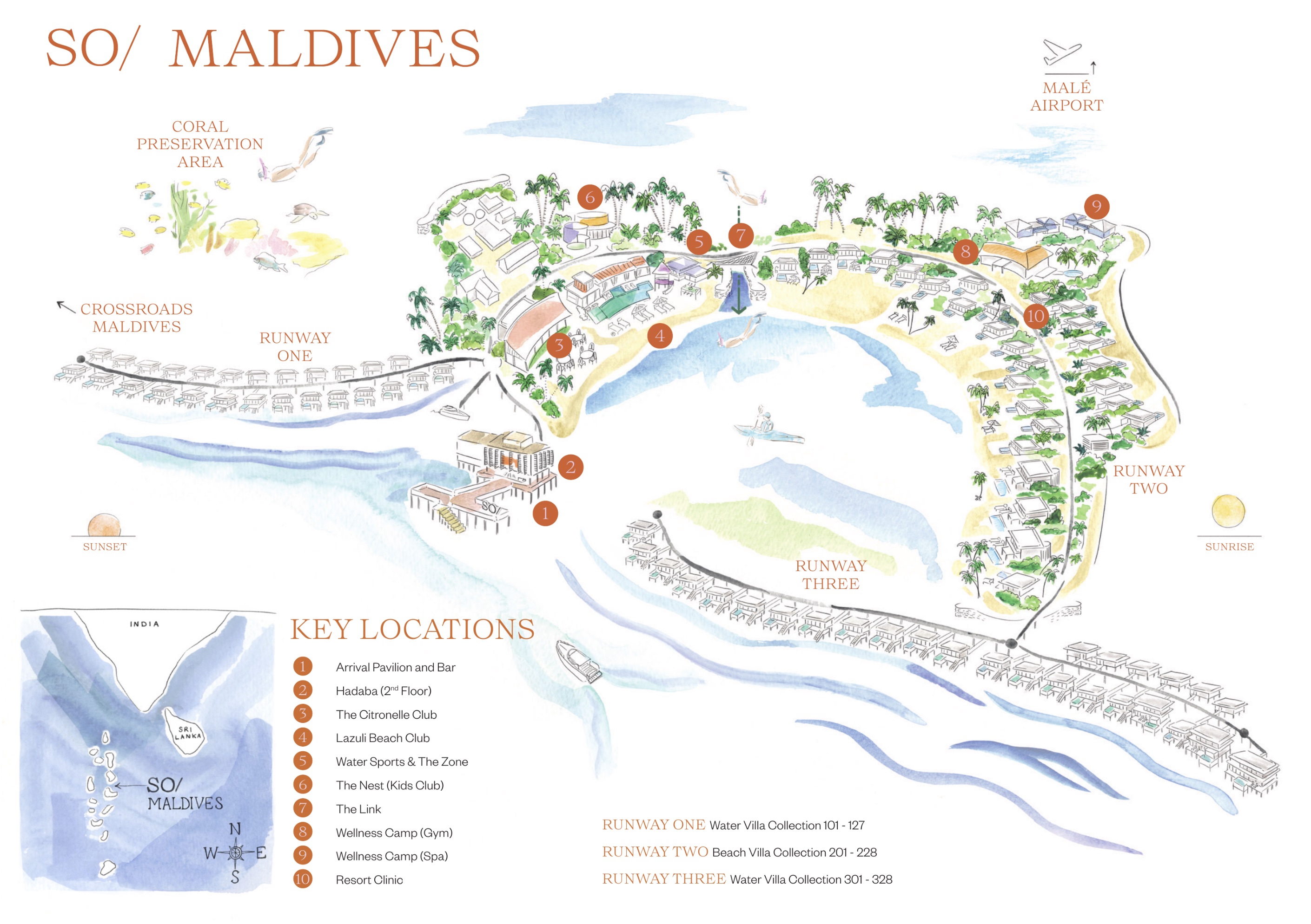Входит в сеть SO/ Hotels, находящуюся под управлением Ennismore и Accor. Курорт включает 80 дизайнерских вилл, размещённых на пляже и на воде. Все виллы имеют бассейн и панорамный вид на океан. Проект SO/ Maldives, разработанный студией Eco-id, построен на сочетании открытых пространств, панорамного остекления и ярких дизайнерских акцентов. Виллы оформлены в светлой цветовой гамме, с использованием дерева, камня и текстиля спокойных тонов, а зеркала визуально расширяют пространство и усиливают игру света.