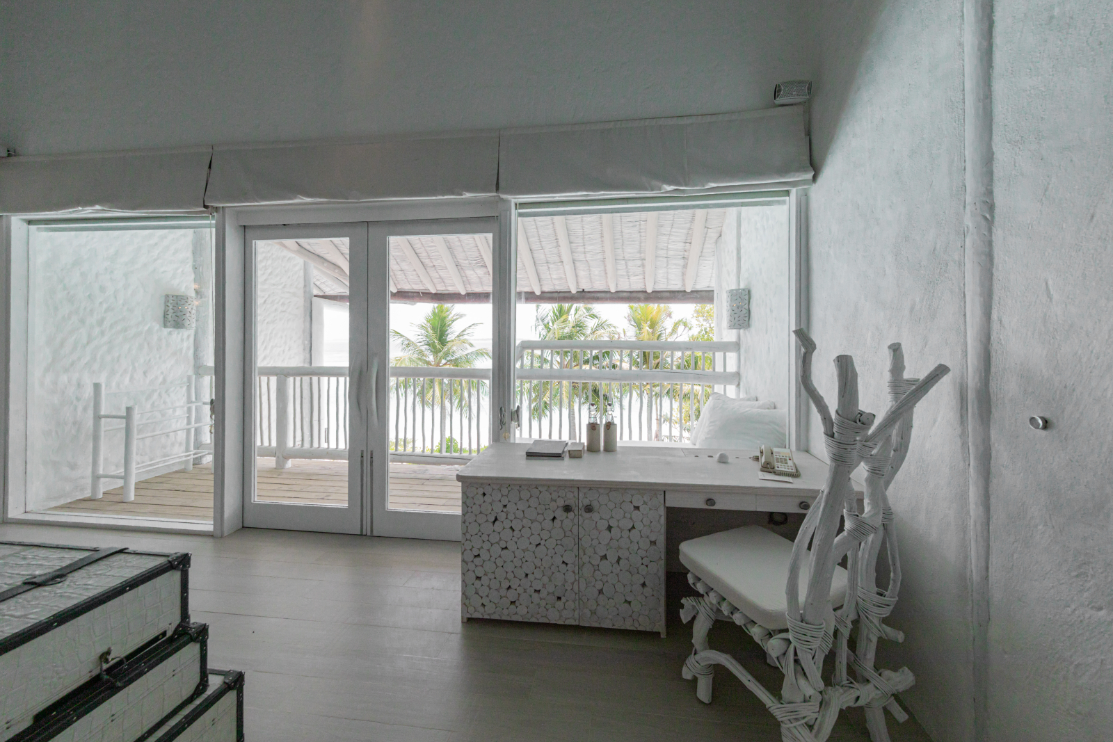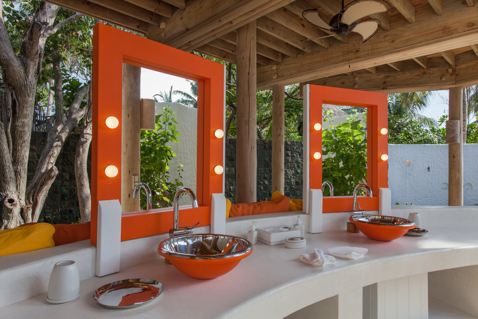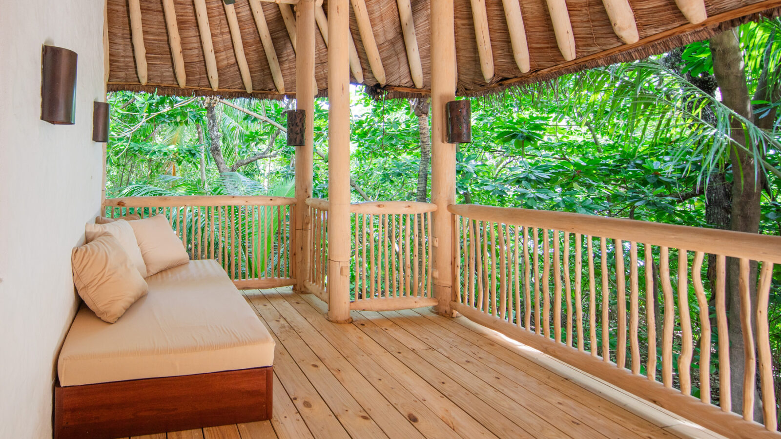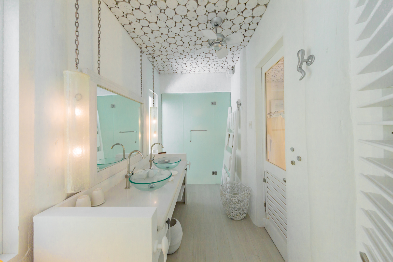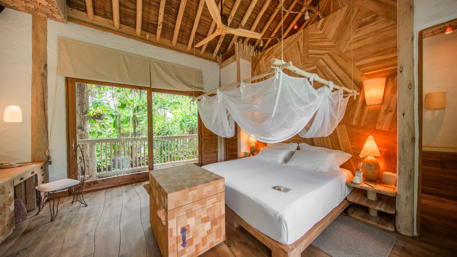 На 2-й вилле: на 1-м этаже: гардеробная, ванная комната на открытом воздухе с ванной и душем; на 2-м этаже: спальня с кроватью king-size, туалет, балкон.
