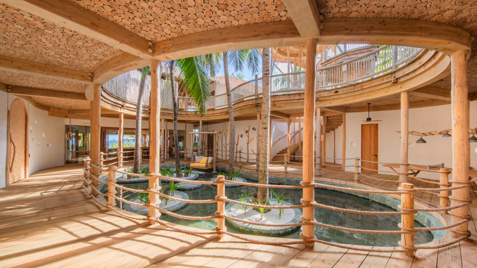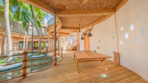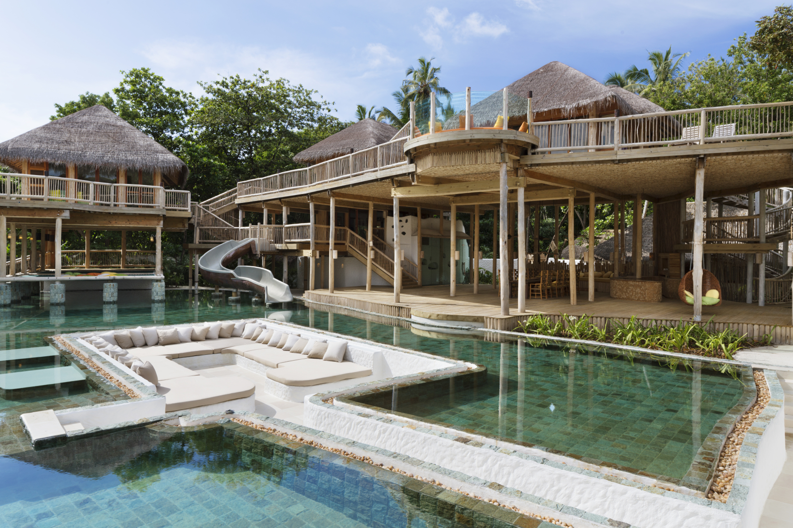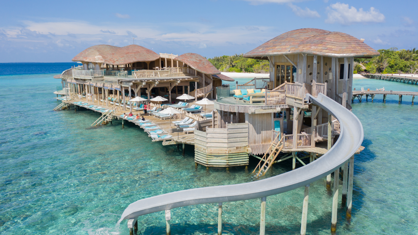На 2-м этаже: терраса на крыше, водная горка, которая спускается в океан.