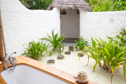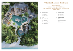 На 2-й вилле: детская спальня с 2 кроватями single, ванная комната с ванной, спальня для обслуживающего персонала с собственной ванной комнатой с душем на открытом воздухе.