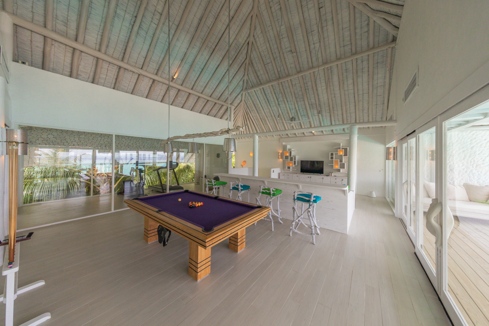 На 3-й вилле: на 1-м этаже: игровая комната, библиотека, тренажёрный зал, терраса; на 2-м этаже: спальня с кроватью king-size, ванная комната с душем, терраса.