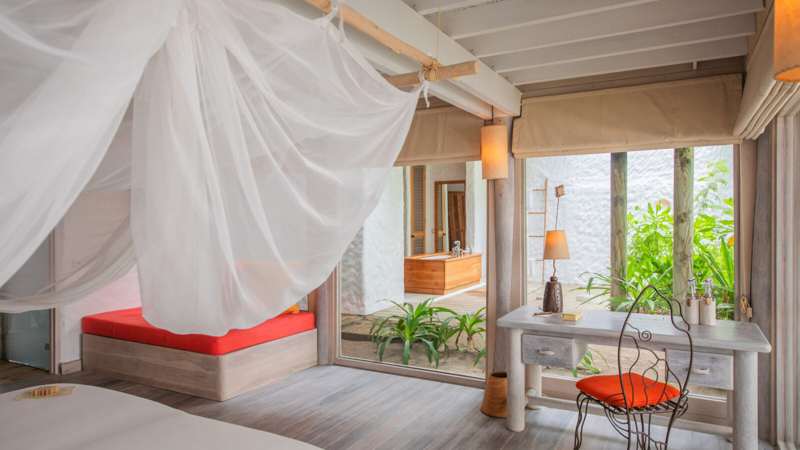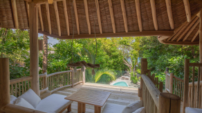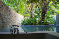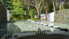 Вилла на берегу. Спальня с кроватью king-size или кроватями twin и гостиной зоной, ванная комната на открытом воздухе с ванной и душем, терраса с бассейном.
