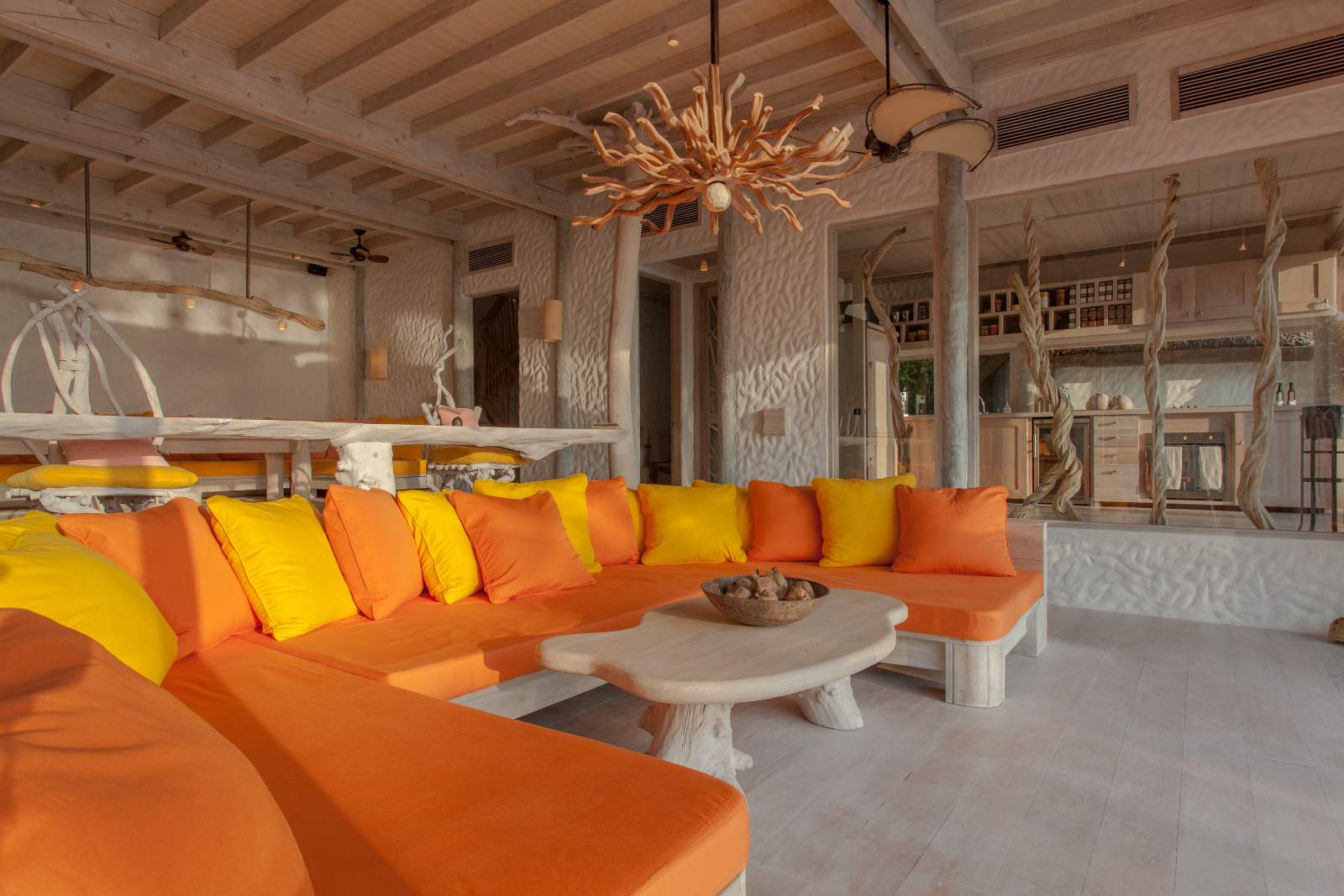 Ресторан Flying Sauces находится в башне высотой 12 м, к которой ведёт 200-метровый зиплайн. Меню постоянно обновляется благодаря визитам шеф-поваров со звёздами Michelin. Есть японский ресторан в стиле омакасе шеф-повара Акиры Кобы. Курорт организует встречи с известными экспертами – можно получить консультацию популярного велнес-специалиста или побывать на мастер-классе именитого спортсмена. В меню спа-центра Soneva Soul – аюрведа и другие традиционные практики; есть и современные процедуры – например, HydraFacial и диагностика Reveal. Детский клуб занимает площадь 1,365 тыс. кв. м и считается одним из крупнейших на Мальдивах. Отель работает в том числе по системе all inclusive.