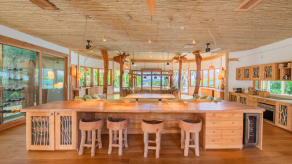 На 1-м этаже: 2 спальни (каждая с кроватью king-size), гостиная, кухня, кабинет, 2 гардеробные, 2 ванные комнаты (каждая с ванной и душем на открытом воздухе), терраса с бассейном и водной горкой. Гостиная и спальни разделены дверями.
