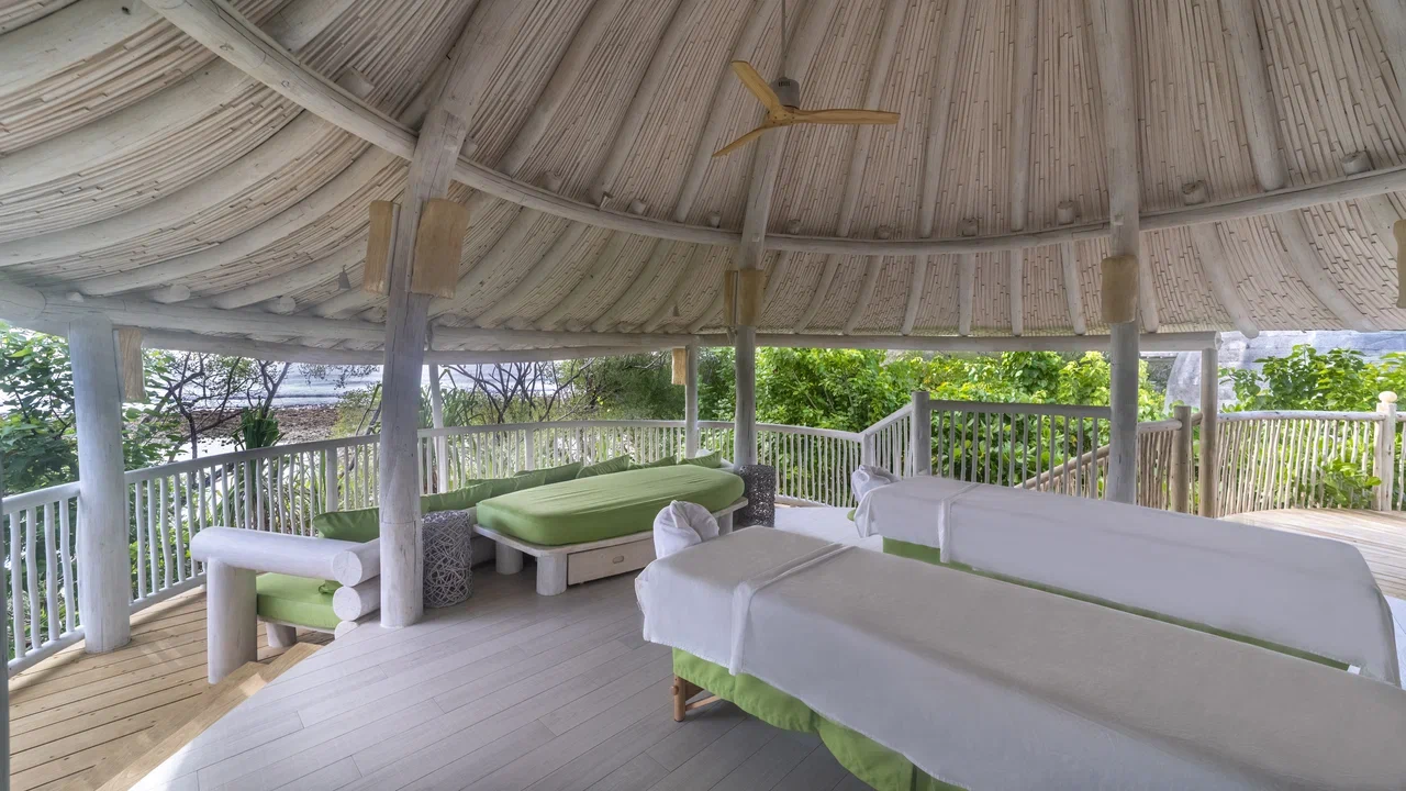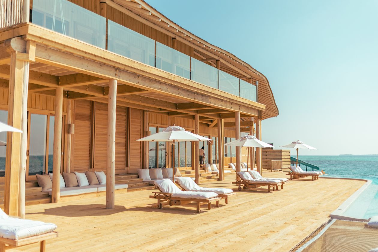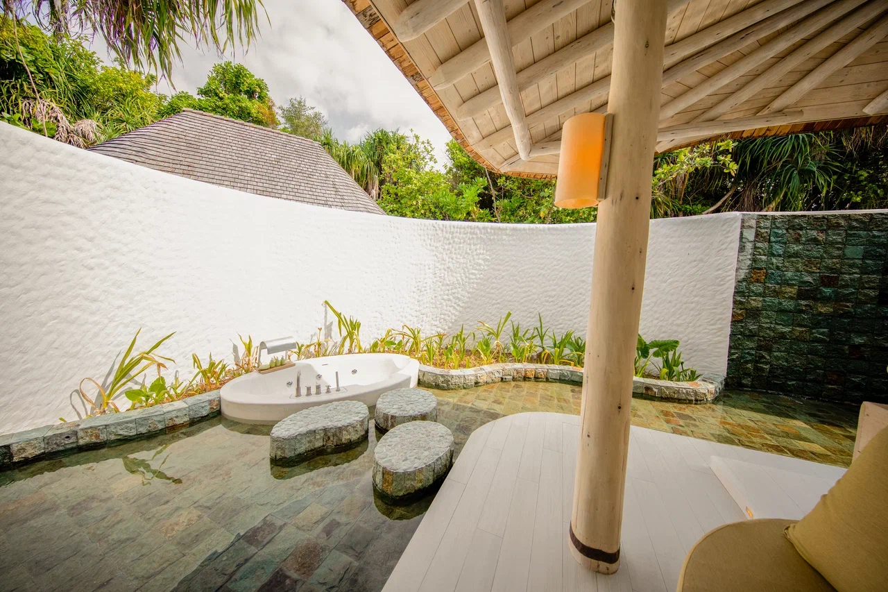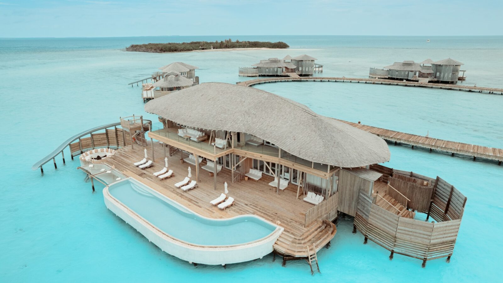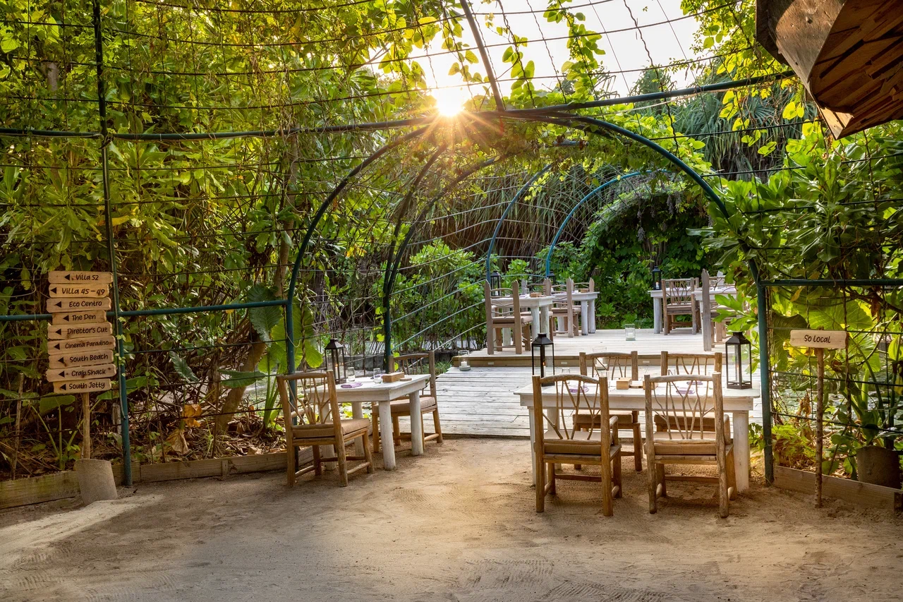 61 вилла, 18 ресторанов, бар, винный погреб, спа-центр, тренажёрный зал, павильон для занятий йогой, центр водных видов спорта, дайвинг-центр, теннисный корт, корт для падел-тенниса, прокат велосипедов, детский клуб, обсерватория на сваях, кинотеатр под открытым небом, библиотека, арт-студия (мастер-классы).