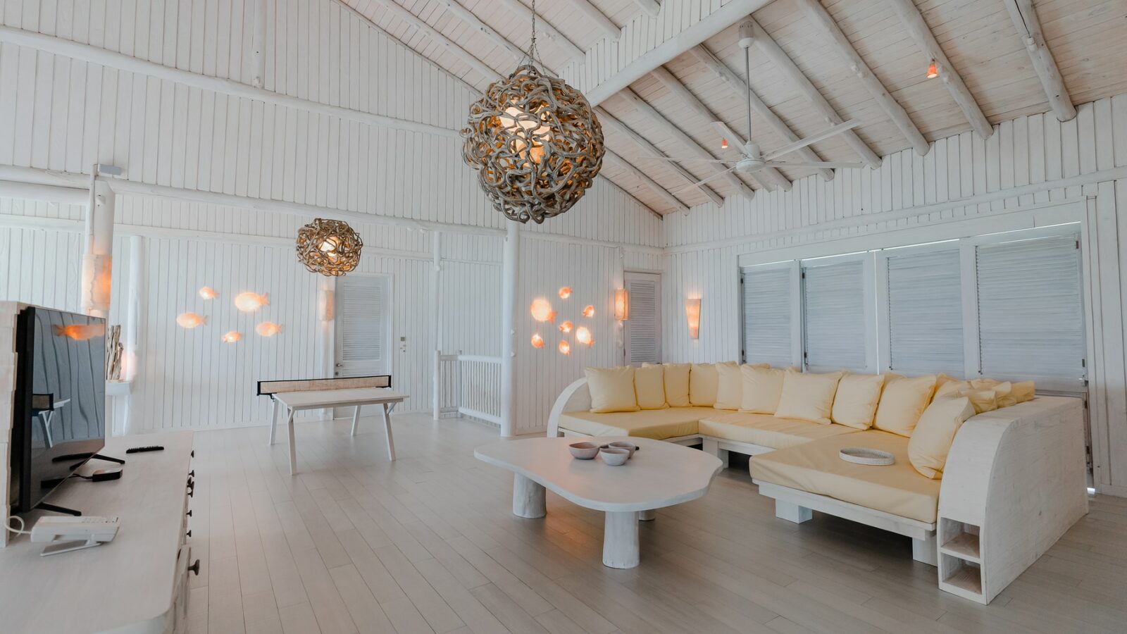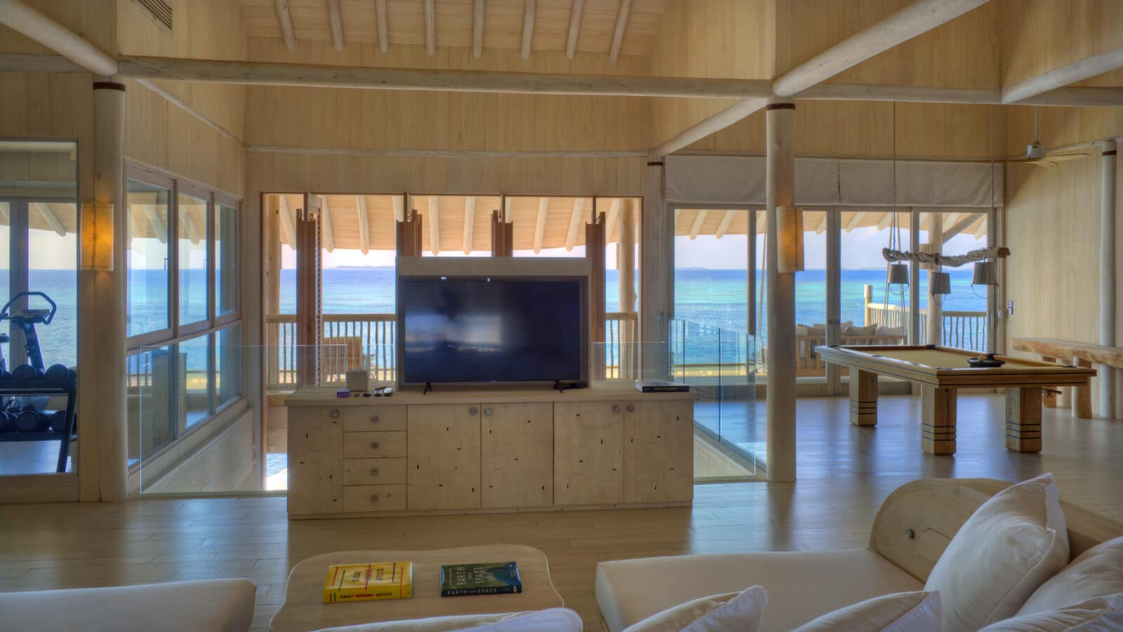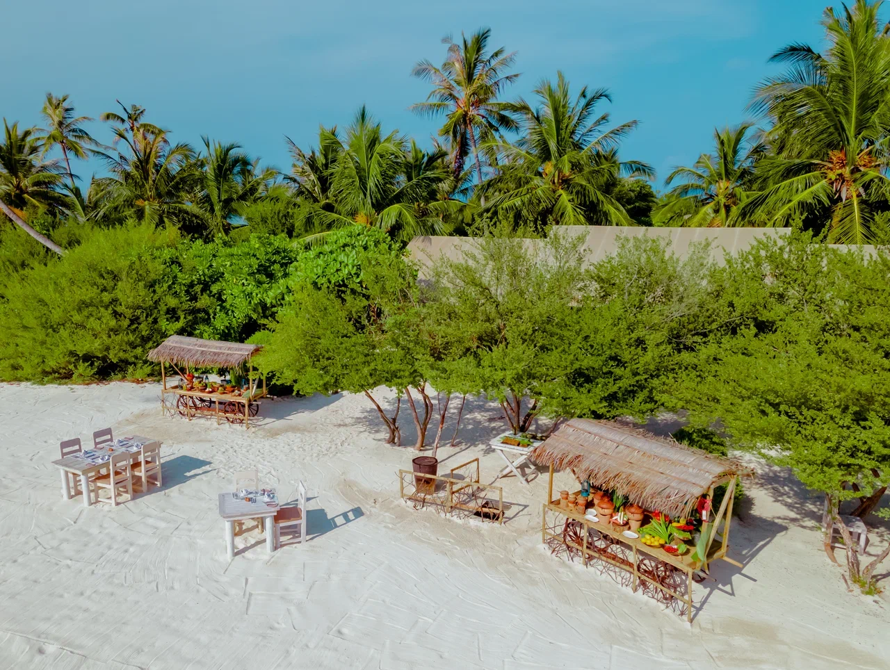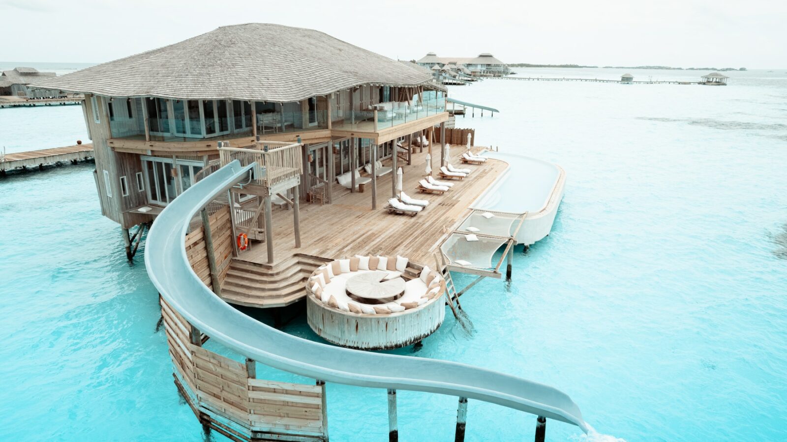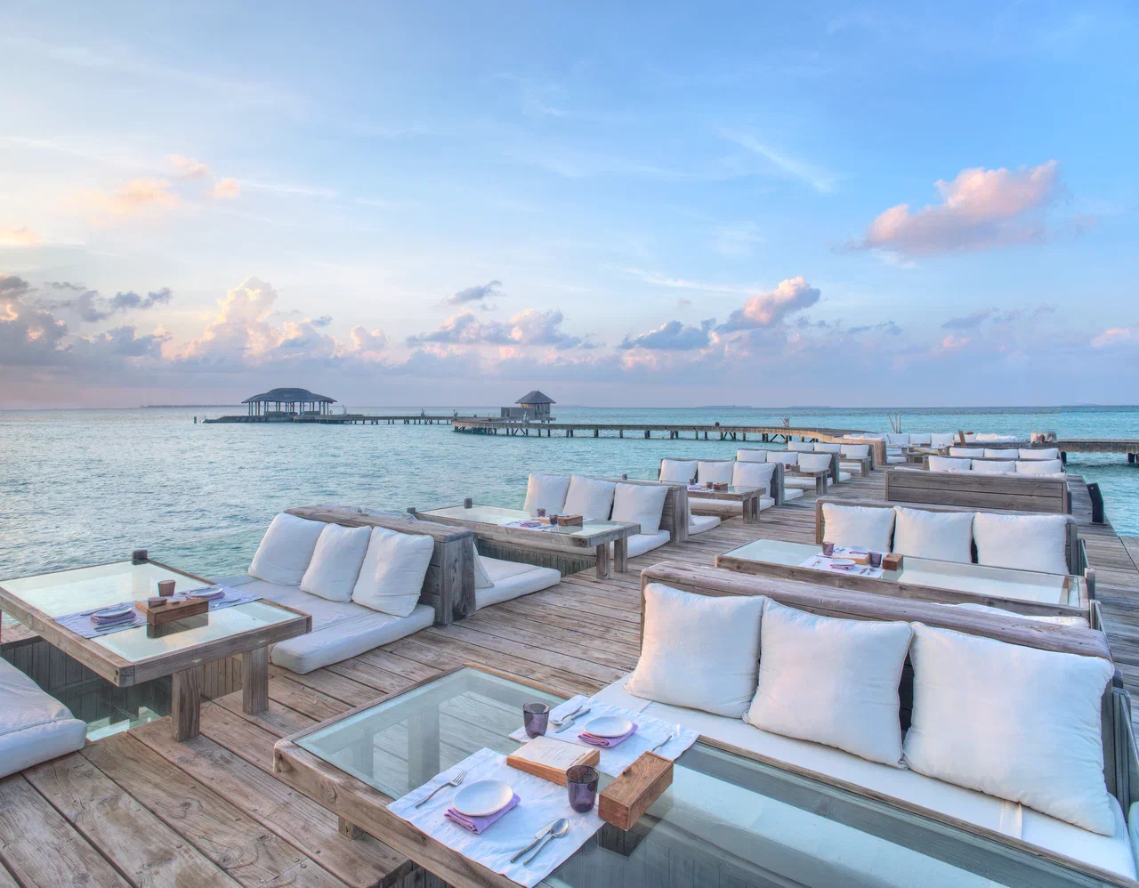 61 вилла, 18 ресторанов, бар, винный погреб, спа-центр, тренажёрный зал, павильон для занятий йогой, центр водных видов спорта, дайвинг-центр, теннисный корт, корт для падел-тенниса, прокат велосипедов, детский клуб, обсерватория на сваях, кинотеатр под открытым небом, библиотека, арт-студия (мастер-классы).