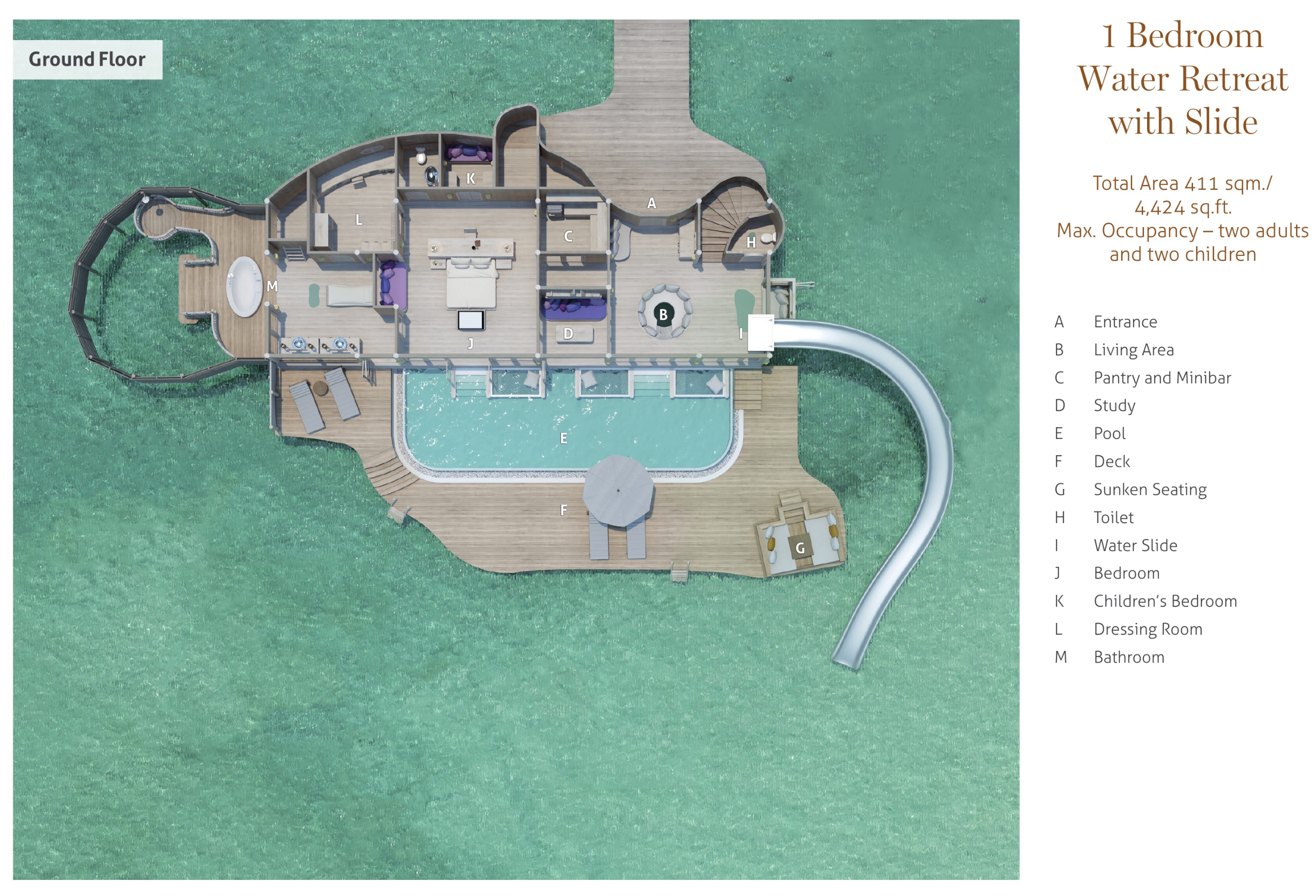 1 Bedroom Water Retreat with Slide