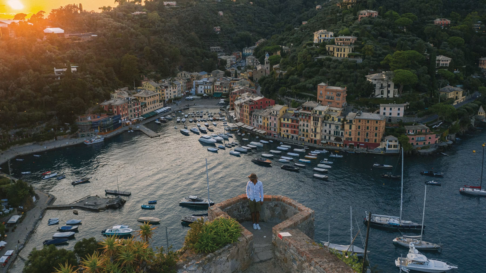 Вид на гавань Портофино и дом-музей Кастелло Браун.