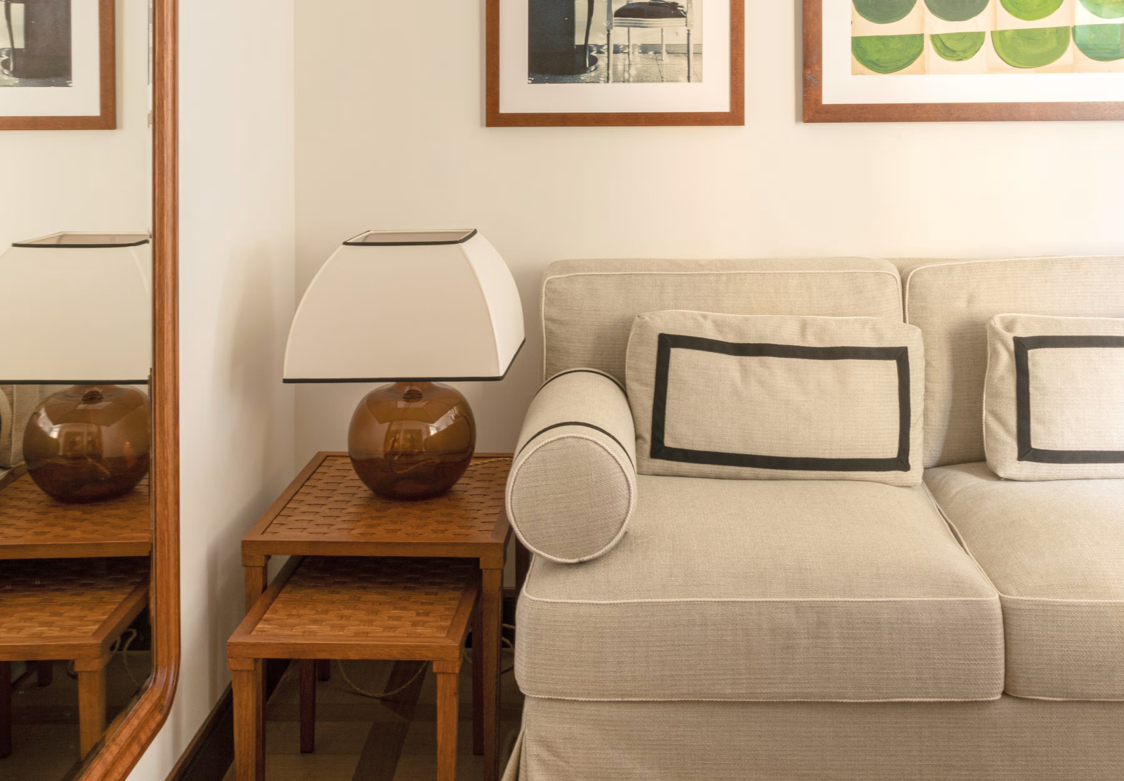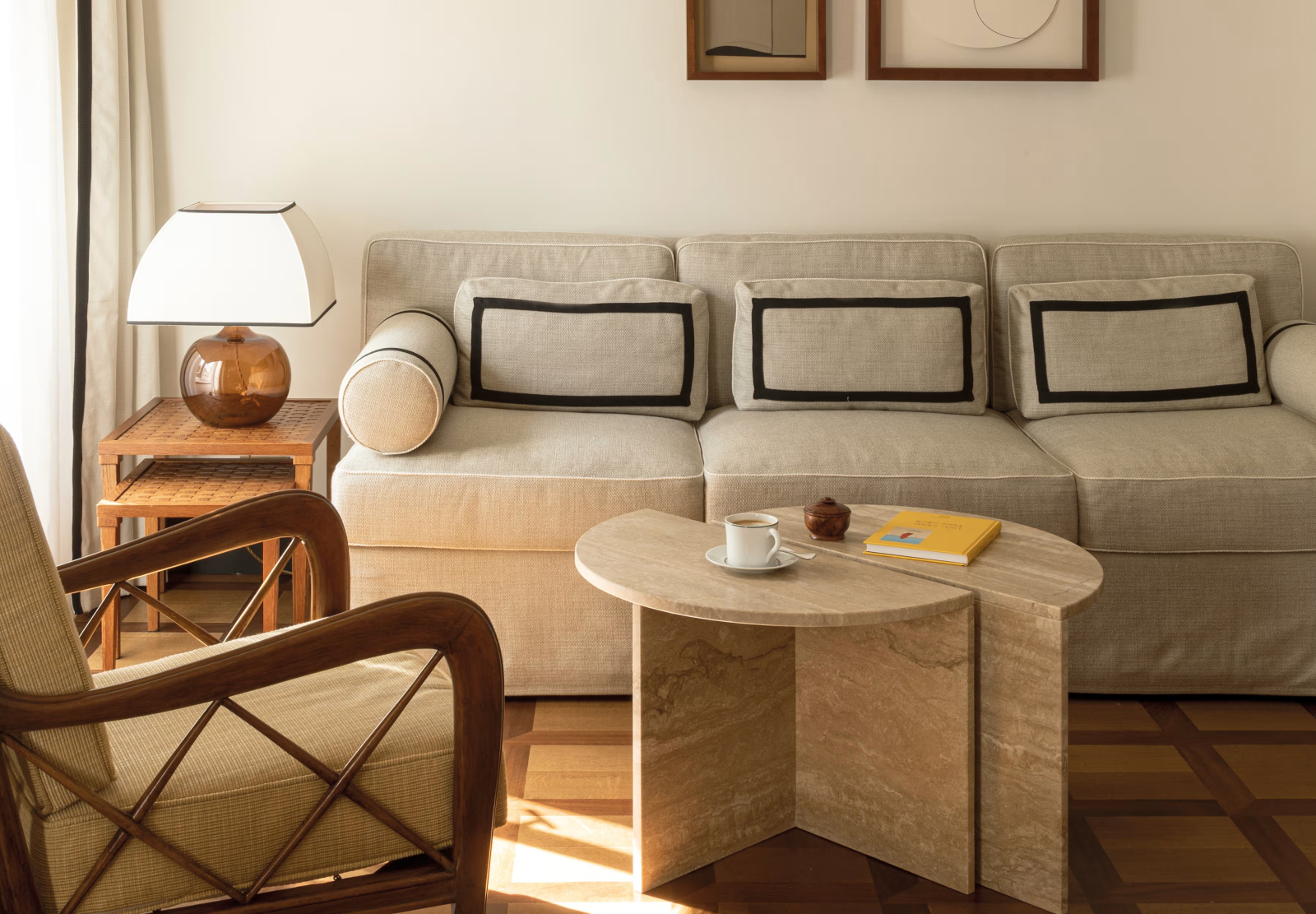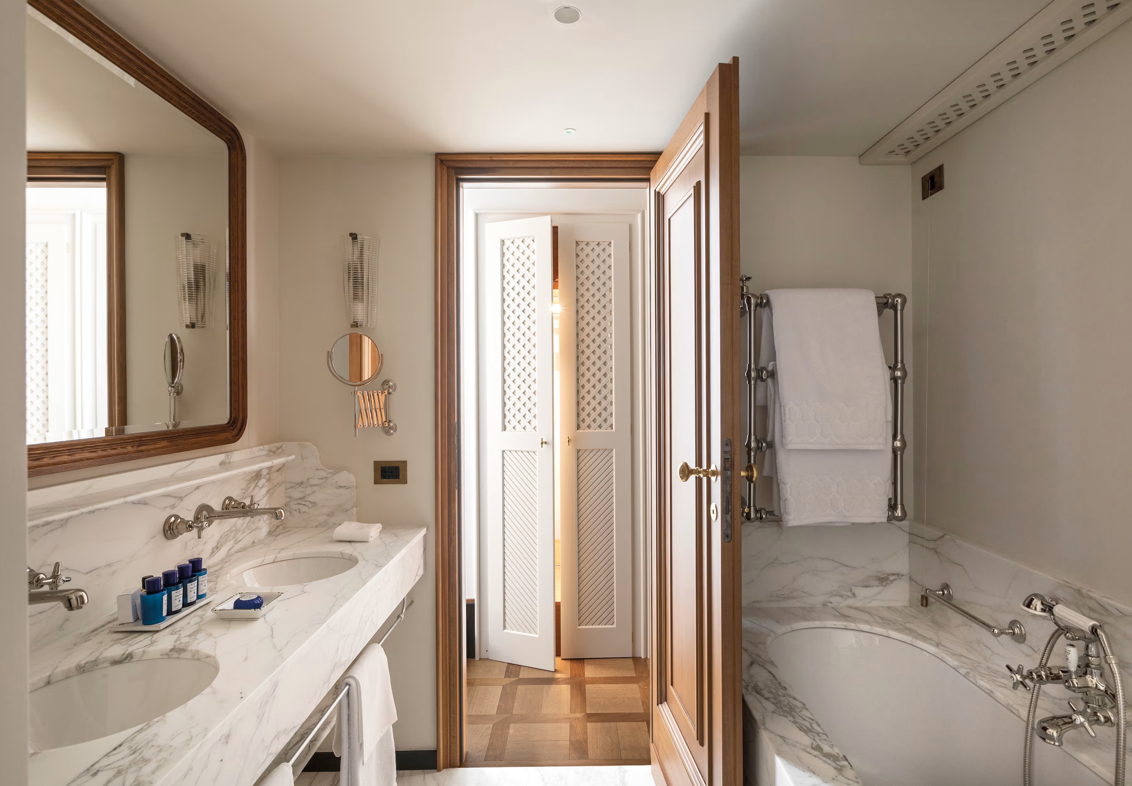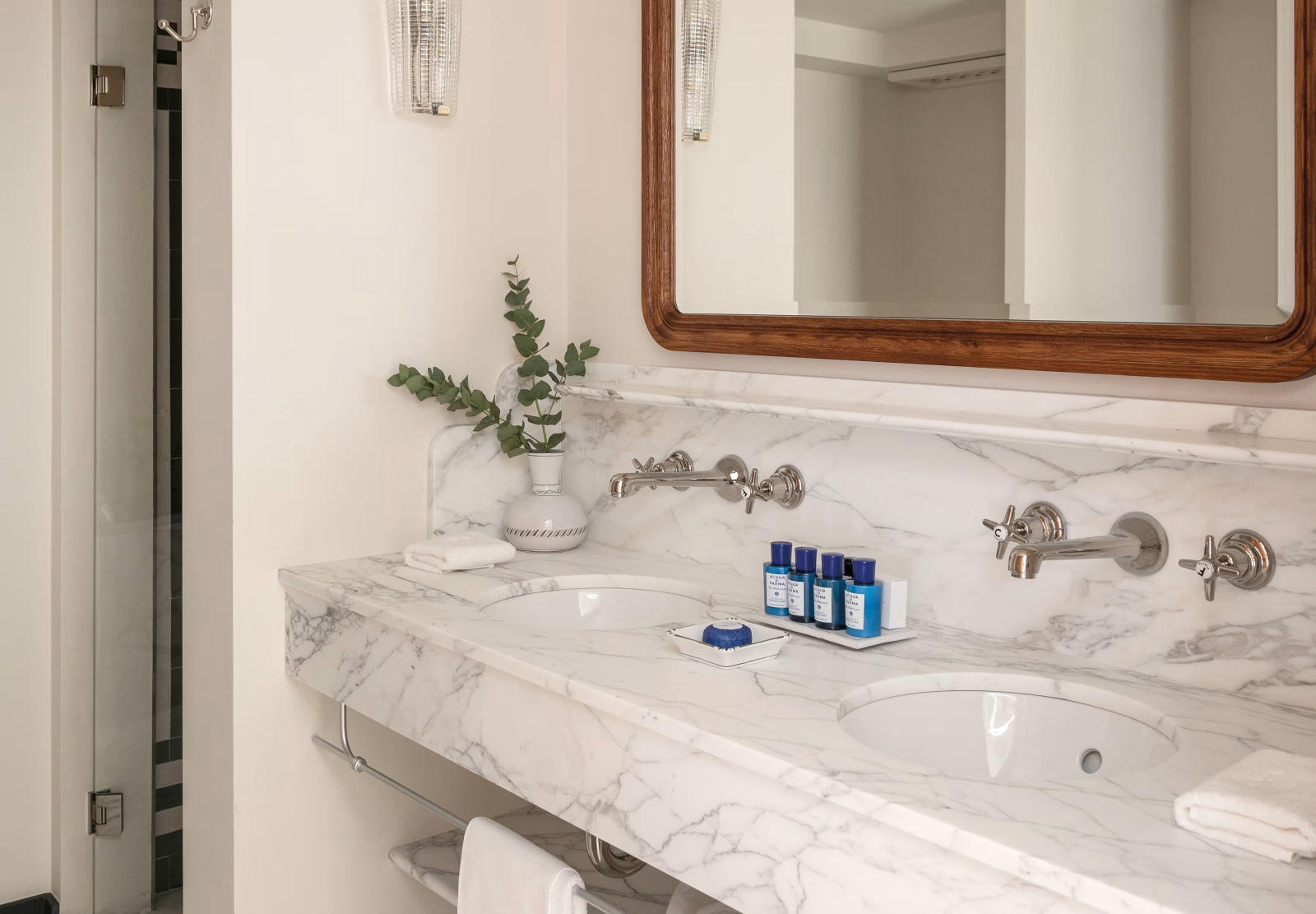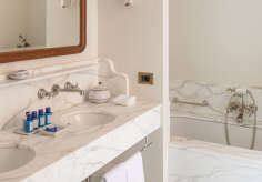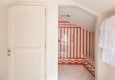 В лобби гостей встречают традиционная терракотовая плитка, повторяющая рисунок волн, детали из каррарского мрамора и местного камня Лаванья, винтажная мебель от прославленных дизайнеров Джо Понти и Паоло Буффы, а также произведения искусства итальянских мастеров. Интерьеры номеров выдержаны в палитре янтаря и шалфея; здесь соседствуют тщательно отобранный антиквариат, светильники из муранского стекла и текстиль от знаменитых домов Loro Piana и Rubelli. Один из номеров носит имя Авы Гарднер – голливудской дивы, останавливавшейся в этом здании в 1954 году, во время съёмок фильма «Босоногая графиня». Ванные комнаты отделаны каррарским мрамором, а изысканные туалетные принадлежности предоставлены парфюмерным брендом Acqua di Parma. Многие номера располагают частными балконами и террасами, откуда открывается захватывающий вид либо на сверкающую гладь гавани, либо на разноцветные фасады домов на склоне берега.