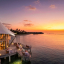 Вилла на воде. Спальня с кроватью king-size, гостиная с обеденной и кухонной зонами, ванная комната с ванной и душем, гостевой туалет, терраса с инфинити-бассейном и прямым спуском к воде. Гостиная и спальня разделены дверью.