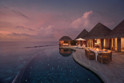 В отеле придерживаются концепции unscripted dining, то есть без фиксированных часов приёма пищи: блюда подают по заказу гостя в любое время и в любой точке острова. Solasta Spa расположен над водой, сквозь стеклянные панели в полу можно наблюдать за жизнью океана. Процедуры проводятся с использованием органических продуктов от Maison Caulières и Omorovicza. Ежедневно в павильоне для йоги проходят утренние и вечерние практики: хатха, виньяса, инь-йога, аэройога, медитации.