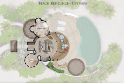 На 2-м этаже: спальня с кроватью king-size, гардеробная, ванная комната с ванной и душем, балкон. Прямой выход к пляжу.