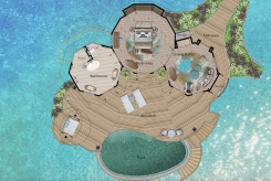 Входит в ассоциацию Relais & Châteaux. На острове всего 26 вилл – на пляже и на воде. Каждая – с собственным бассейном и персональным батлером. Виллы оформлены в стиле бохо-шик, с яркими акцентами и с использованием натуральных материалов. Самая просторная – The Nautilus Mansion with Private Pool площадью 922 кв. м. Она находится в уединённой части пляжа. Мебель для виллы изготовлена по индивидуальным эскизам из отобранных вручную материалов. Пространства украшены произведениями искусства и декором, который отражает богемный шик острова.