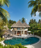 Вилла на берегу. Спальня с кроватью king-size, гостиная, ванная комната с ванной и душем, душ на открытом воздухе, терраса с инфинити-бассейном, частный сад. Гостиная и спальня разделены дверью. Прямой выход к пляжу.