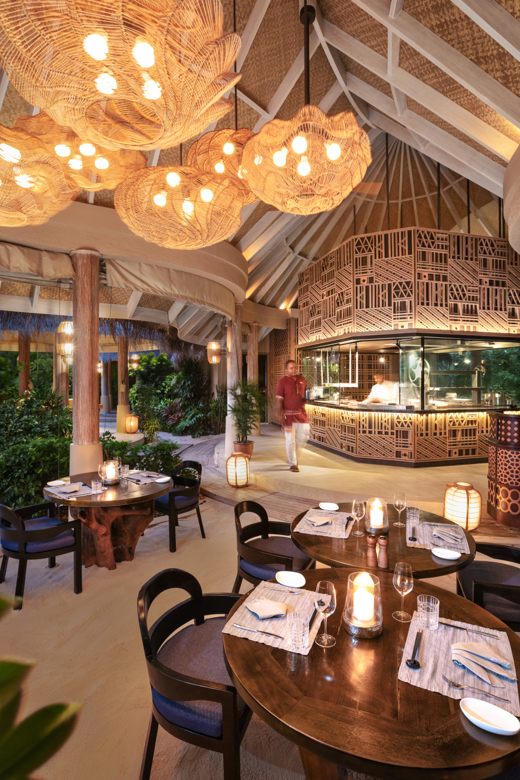 В отеле придерживаются концепции unscripted dining, то есть без фиксированных часов приёма пищи: блюда подают по заказу гостя в любое время и в любой точке острова. Solasta Spa расположен над водой, сквозь стеклянные панели в полу можно наблюдать за жизнью океана. Процедуры проводятся с использованием органических продуктов от Maison Caulières и Omorovicza. Ежедневно в павильоне для йоги проходят утренние и вечерние практики: хатха, виньяса, инь-йога, аэройога, медитации.