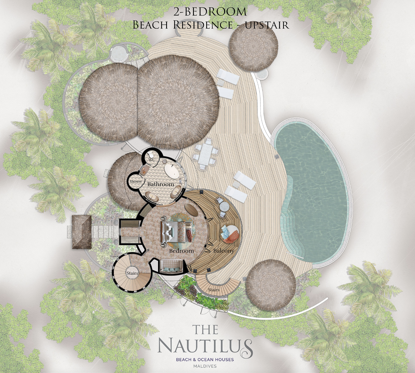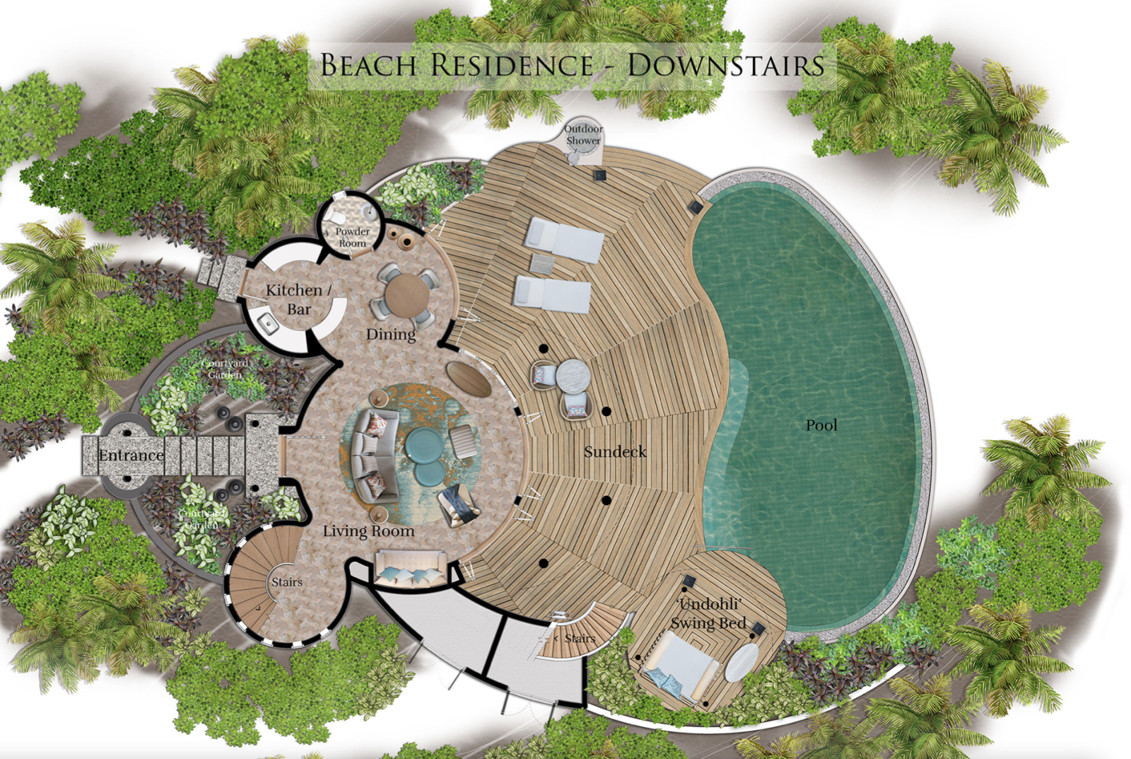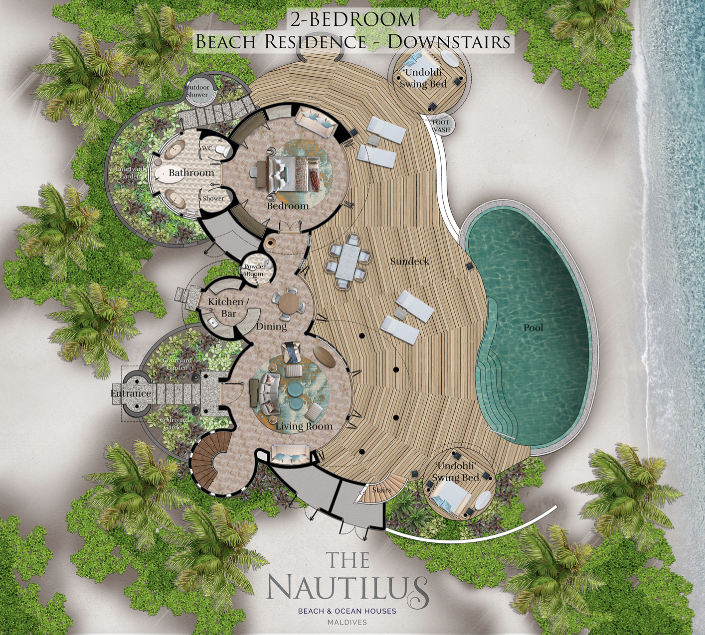 Входит в ассоциацию Relais & Châteaux. На острове всего 26 вилл – на пляже и на воде. Каждая – с собственным бассейном и персональным батлером. Виллы оформлены в стиле бохо-шик, с яркими акцентами и с использованием натуральных материалов. Самая просторная – The Nautilus Mansion with Private Pool площадью 922 кв. м. Она находится в уединённой части пляжа. Мебель для виллы изготовлена по индивидуальным эскизам из отобранных вручную материалов. Пространства украшены произведениями искусства и декором, который отражает богемный шик острова.