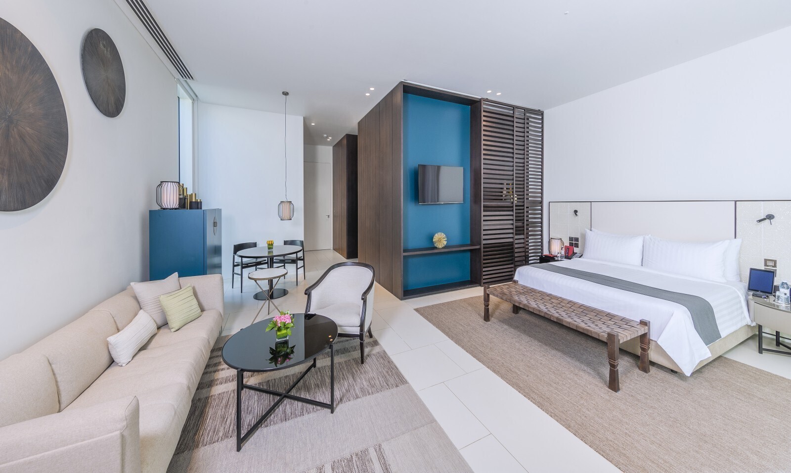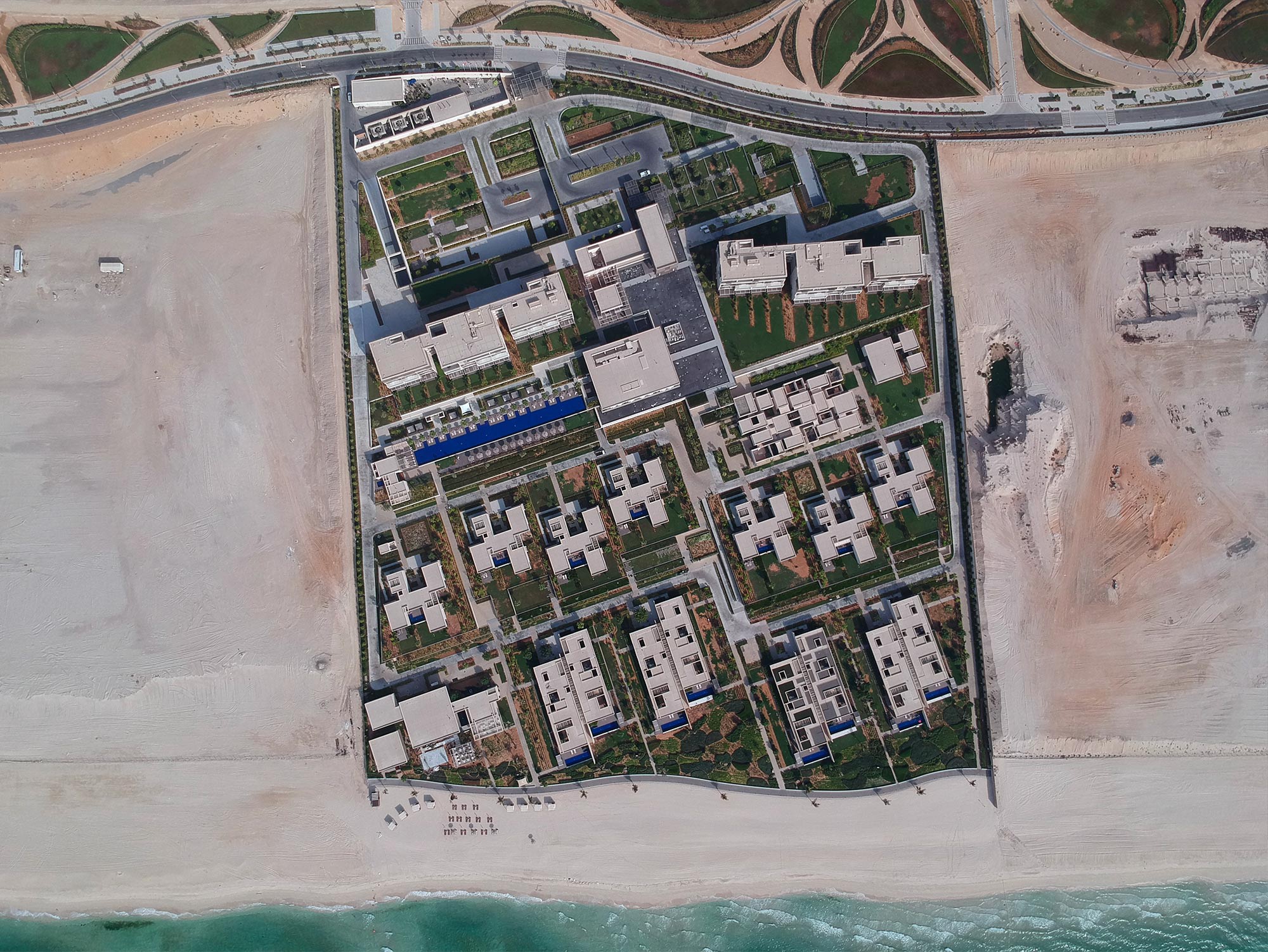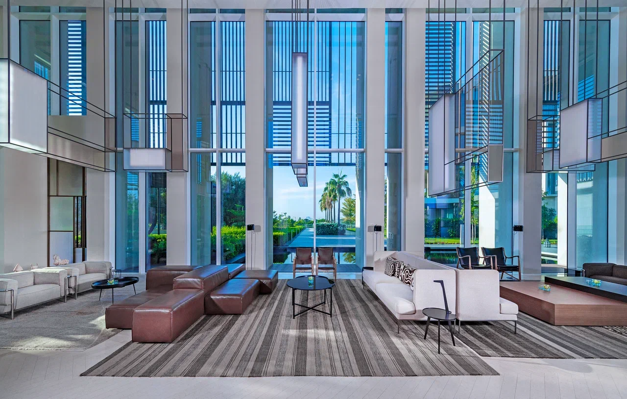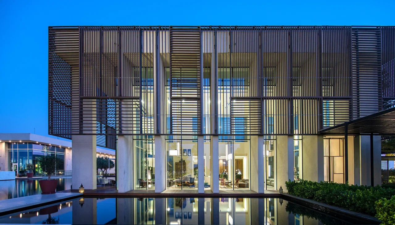 В 2024 году отель был удостоен премии World Travel Awards в номинации «Ведущий пляжный курорт класса люкс на Ближнем Востоке». Архитектурный проект разработан знаменитым итальянским архитектором Пьеро Лиссони. Дизайн выдержан в лаконичном современном стиле: белые фасады, высокие дверные проёмы, геометрические деревянные перегородки и светлая нейтральная палитра, разбавленная яркими акцентами. Во всех номерах есть балкон или терраса с выходом в частный сад. Виллы оснащены собственными бассейнами.