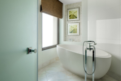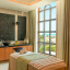 2 спальни (одна – с кроватью king-size, другая – с кроватями twin), гостиная с обеденной зоной, 2 ванные комнаты (каждая с ванной и душевой кабиной), гостевой туалет, балкон. Гостиная и спальни разделены дверями.