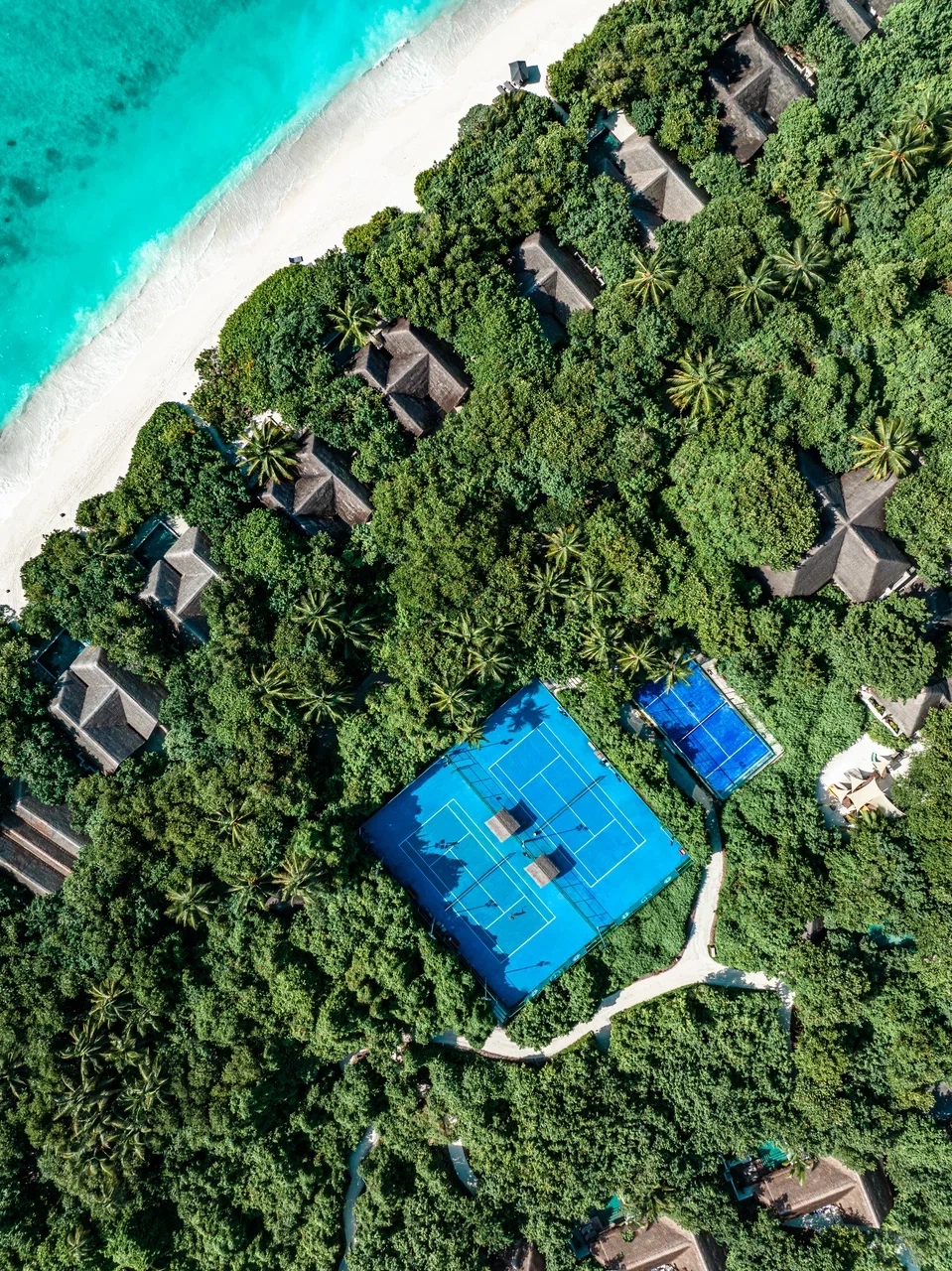111 вилл, 5 ресторанов, 2 бара, винный погреб, 2 открытых бассейна, спа-центр, тренажёрный зал, центр водных видов спорта, дайвинг-центр, павильон для занятий йогой, 2 теннисных корта, корт для падел-тенниса, корт для бадминтона, волейбольное поле, мини-футбол, детский клуб, клуб для подростков, бутик.