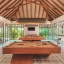 На 3-й вилле: спальня с кроватью king-size и гостиной зоной, ванная комната с ванной и душевой кабиной, душ на открытом воздухе, терраса с небольшим гидромассажным бассейном.