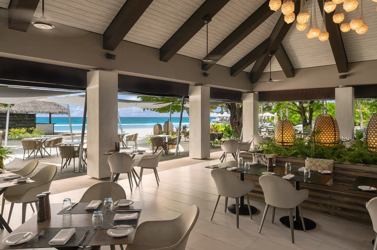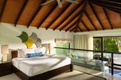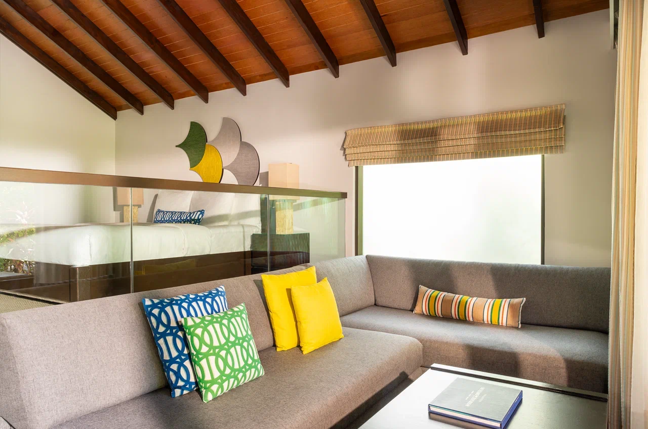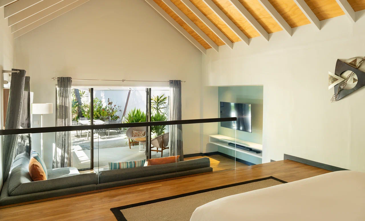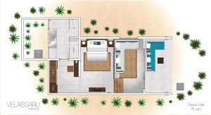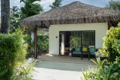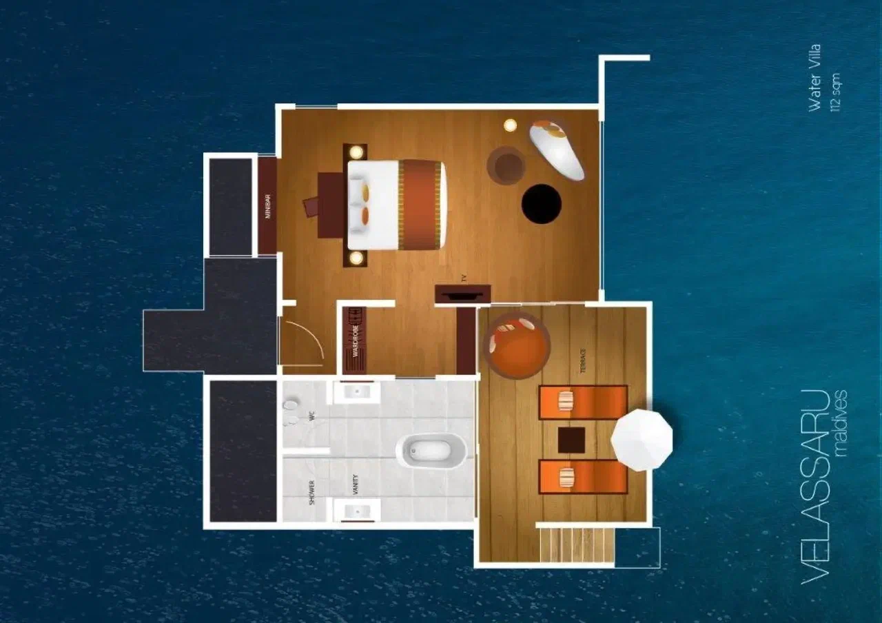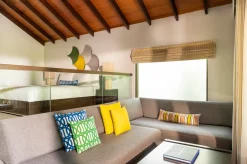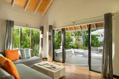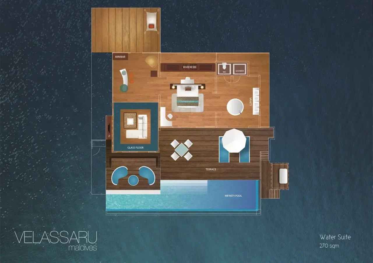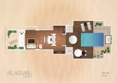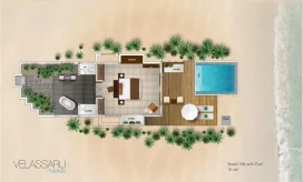 Velassaru входит в коллекцию Small Luxury Hotels of the World. Часть вилл – с частными бассейнами на террасе. В оформлении современный минимализм сочетается с элементами мальдивской архитектуры: тик, камень, крыши из пальмового листа. Высокие своды и панорамные окна создают ощущение простора и впускают максимум света. На всех виллах – косметика L’Occitane.