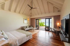 Вилла на берегу. Спальня с кроватью king-size, гостиная зона, ванная комната с душевой кабиной и джакузи на открытом воздухе, терраса.