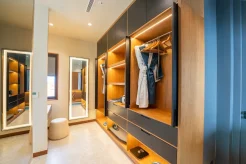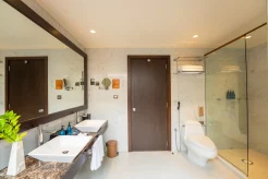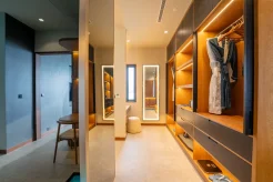Вилла на воде. 2 спальни с кроватями king-size и гостиными зонами, гостиная, 2 гардеробные, 2 ванные комнаты (каждая с ванной и душевой кабиной), 2 террасы с 2 бассейнами, прямой спуск к воде. Гостиная и спальни разделены дверями.