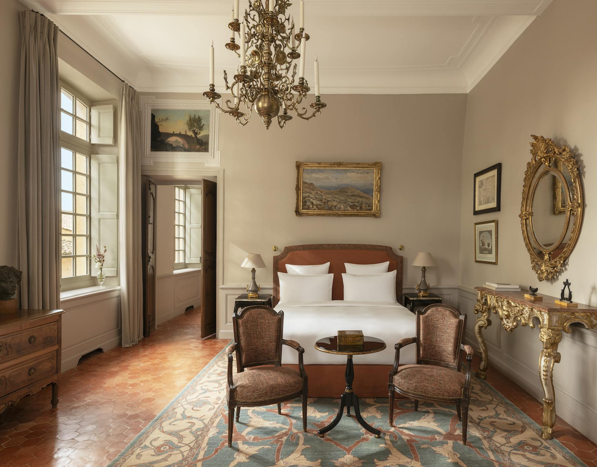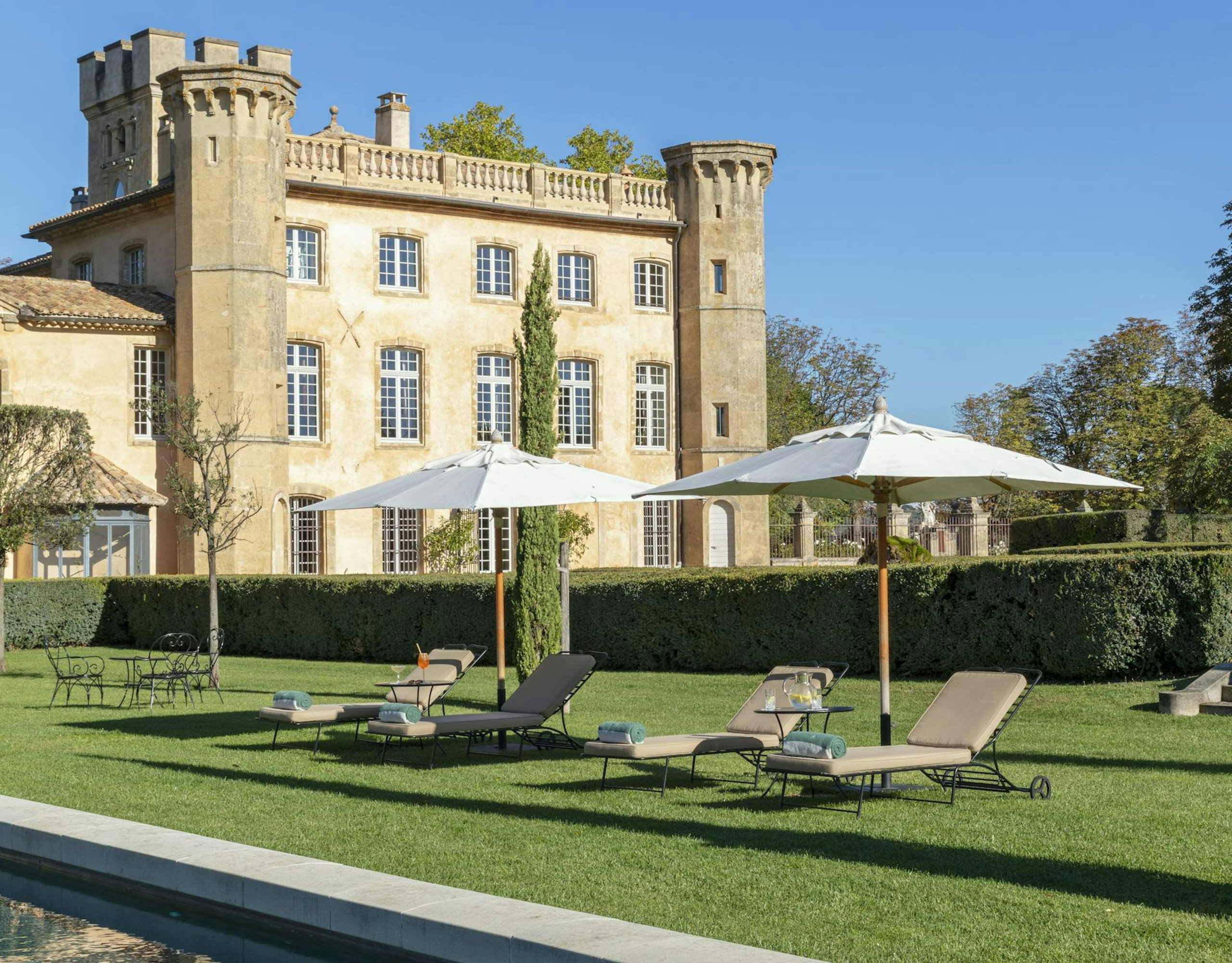 Отель входит во французскую коллекцию ультрароскошных отелей Airelles и предлагает принципиально иной формат размещения: вилла не сдаётся отдельными номерами, а арендуется исключительно целиком, становясь на время частной резиденцией гостей. Имение ведёт свою историю с XVI века. Строительство шато в тосканском стиле в XVII веке приписывают известному архитектору Валлону. Тогда же вокруг виллы разбили французский парк с фонтанами и гротами. Свой современный облик главный дом обрёл в XIX веке. Команда Airelles бережно сохранила дух барокко и Ренессанса, наполнив интерьеры подлинными произведениями искусства, антикварной мебелью, люстрами, мозаикой и роскошным текстилем. Общая площадь виллы составляет 1,4 тыс. кв. м, при этом в ней всего 12 спален, каждая с неповторимым авторским дизайном. Гостей обслуживает персональная команда во главе с батлером и шеф-поваром. Отдельного упоминания заслуживает крытая оранжерея возле бассейна.