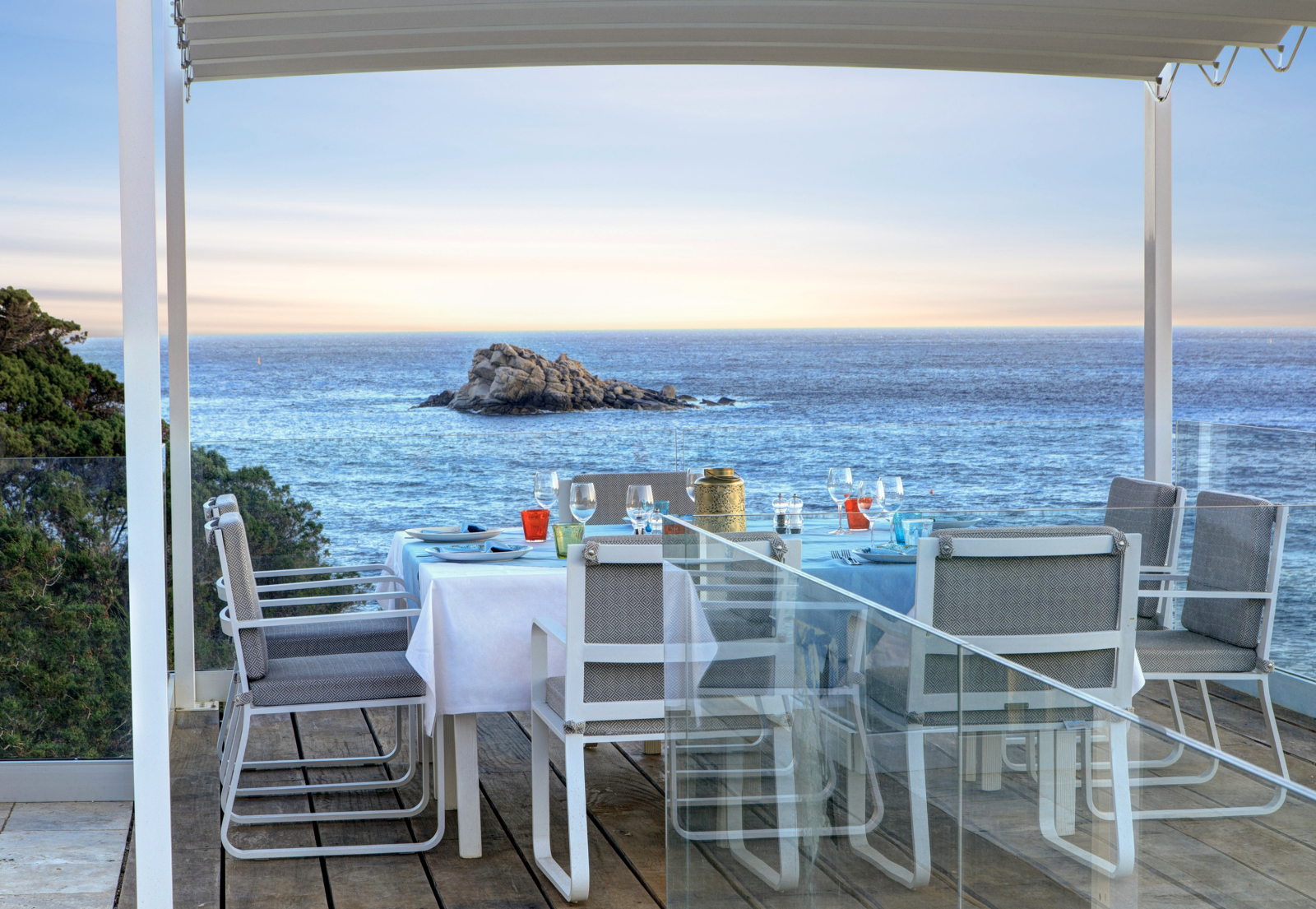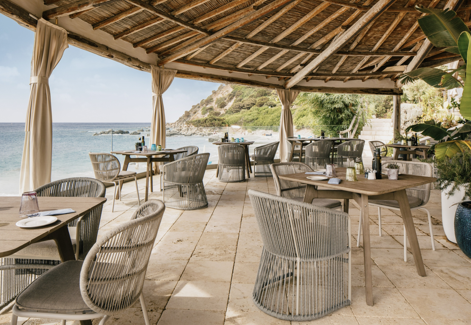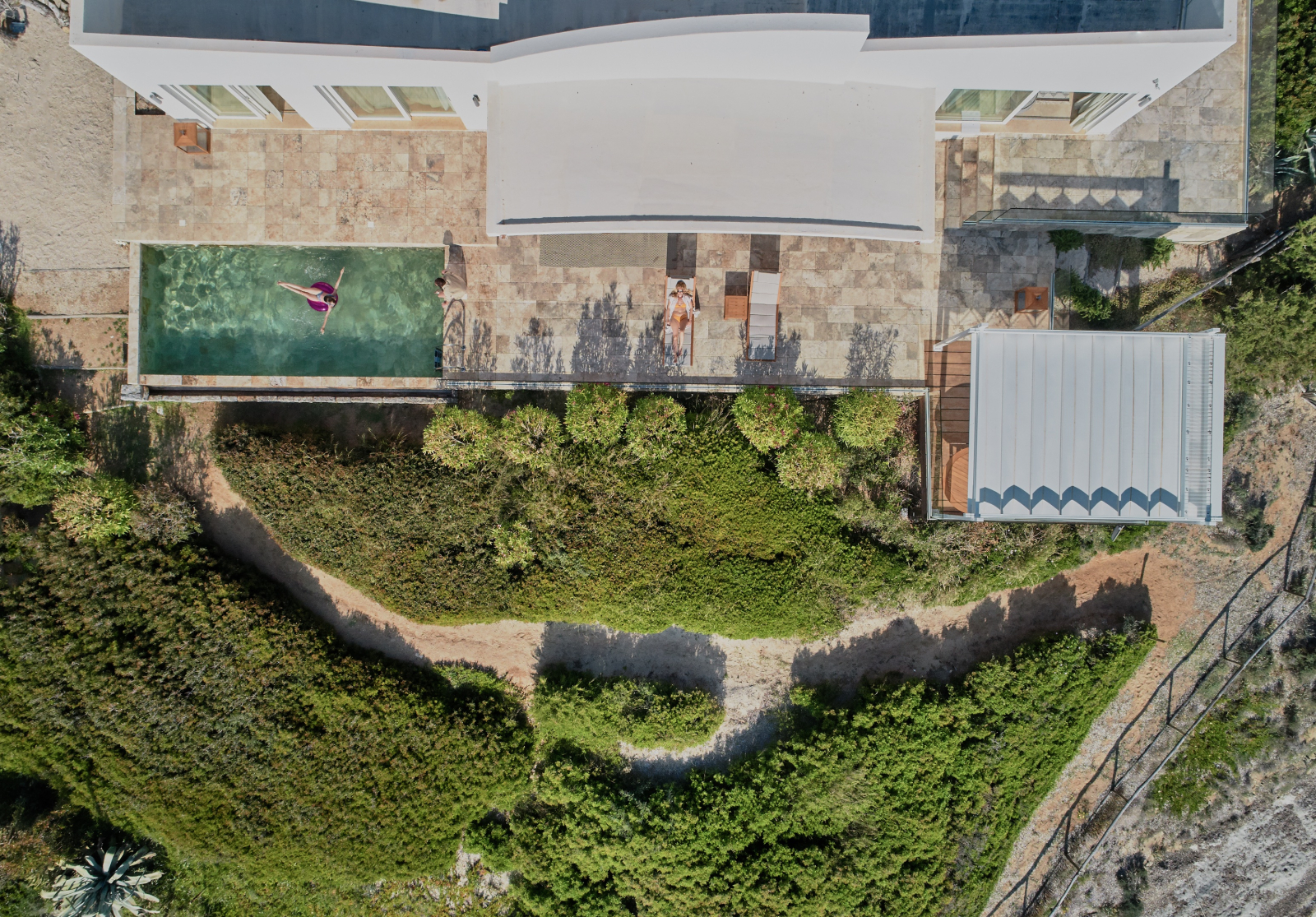 Вилла на скалистом берегу моря. 4 спальни (две – с кроватями queen-size, одна – с кроватями twin, одна – с кроватью single), гостиная с обеденной зоной, кухня, 4 ванные комнаты (каждая с душевой кабиной), душ на открытом воздухе, терраса с бассейном и обеденной зоной. Гостиная и спальни разделены дверями.
