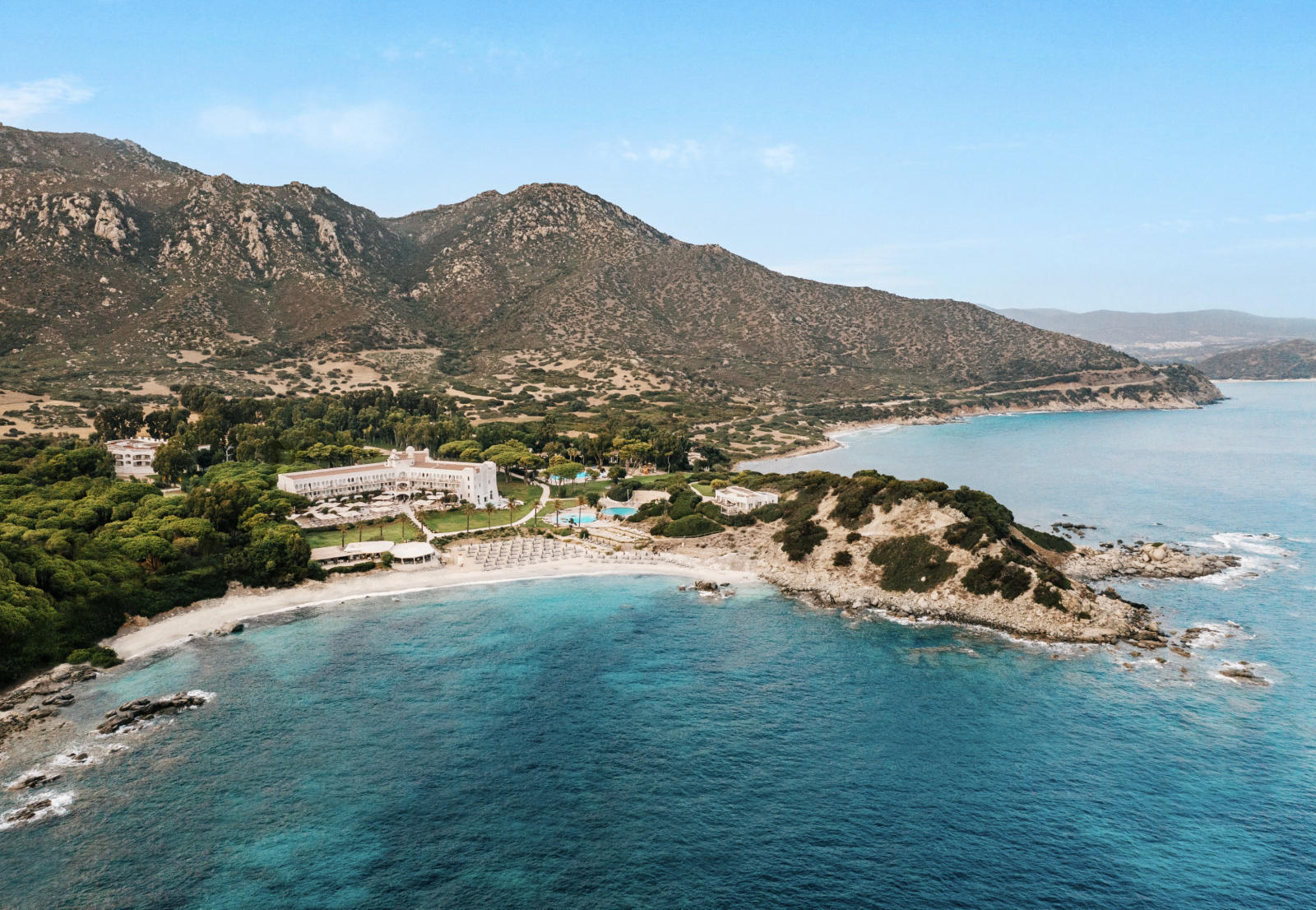 Панорамный вид на море и отель Falkensteiner Resort Capo Boi.