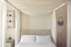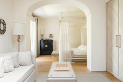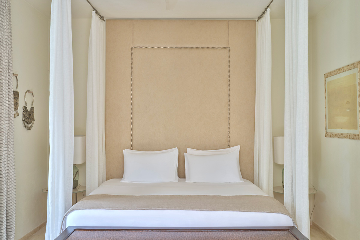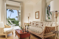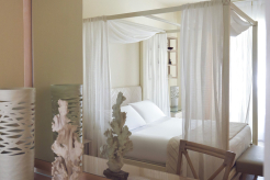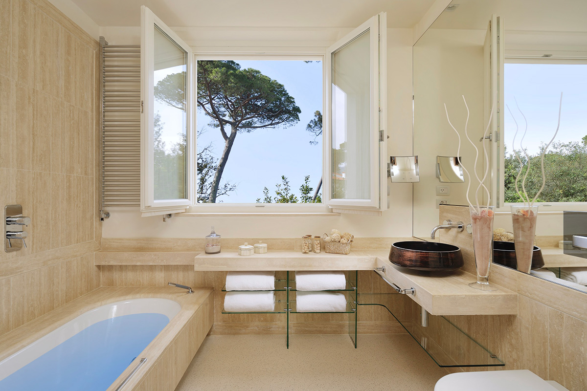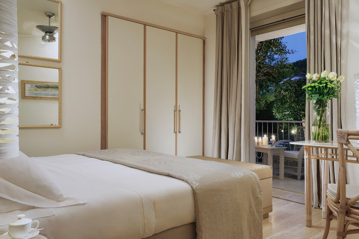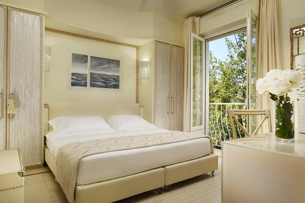 Входящий в гостиничный бренд Collezione EM и ассоциацию Virtuoso отель занимает виллу, построенную в 1960-х годах как летняя резиденция для семьи, на протяжении многих поколений приезжавшей на отдых в Форте-деи-Марми. Атмосфера частного дома бережно сохранена: общие зоны наполнены мебелью ручной работы от местных мастеров, коллекцией диковинок, картин и декора из соседней коммуны Пьетрасанта, известной своими музеями и галереями. Интерьеры номеров выполнены в почти монохромной песочной палитре, создающей ощущение абсолютного покоя. Здесь гостей встречают кровати с балдахинами, элементы в морском стиле, ванные комнаты, отделанные травертином, и селективная косметика сицилийского бренда Ortigia.