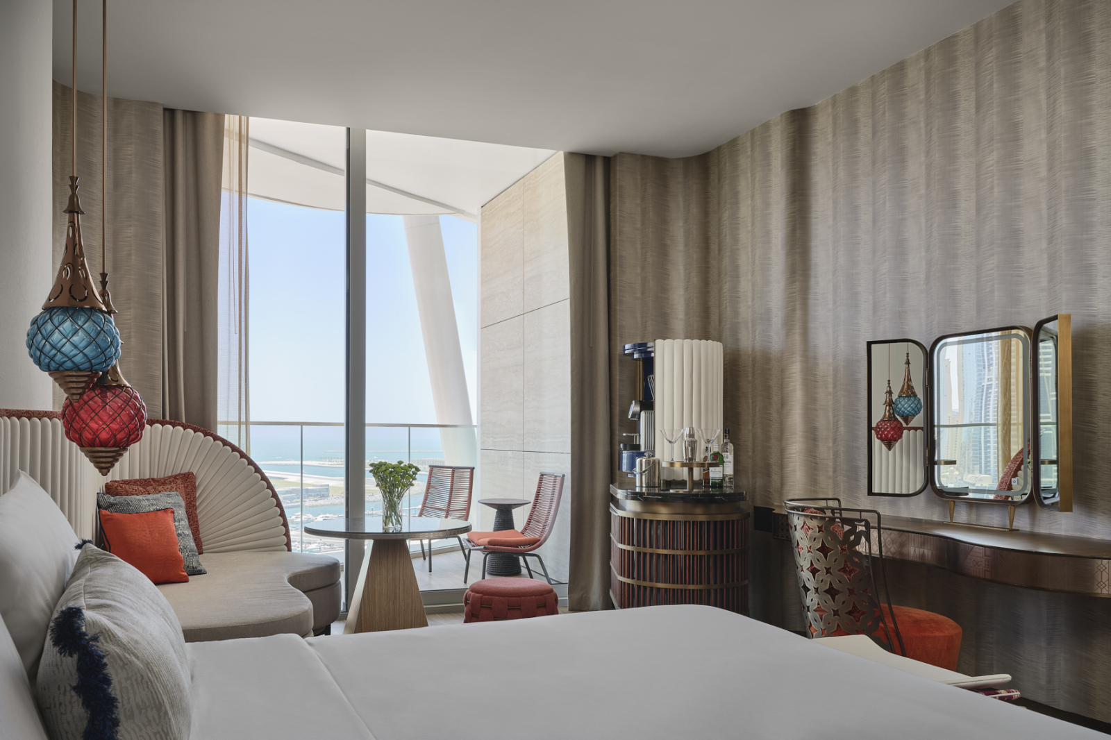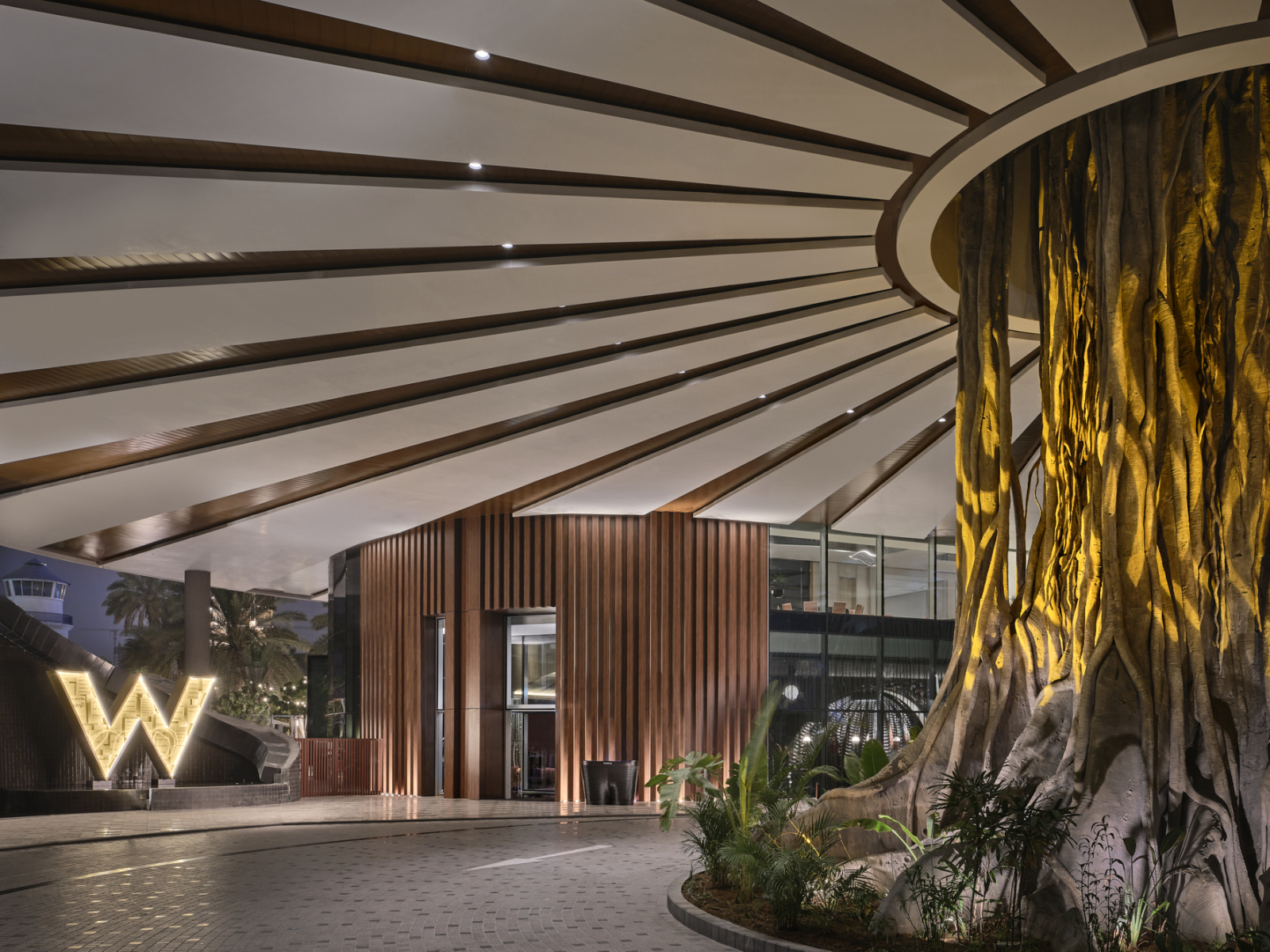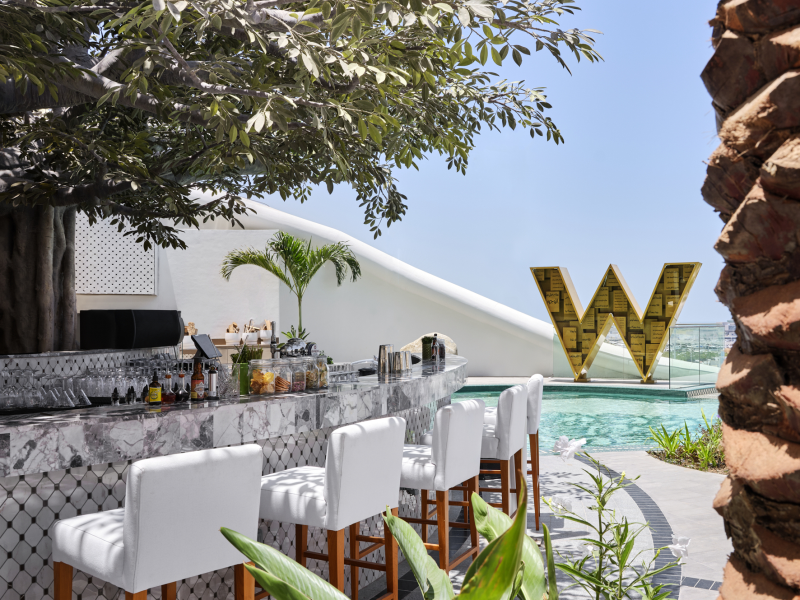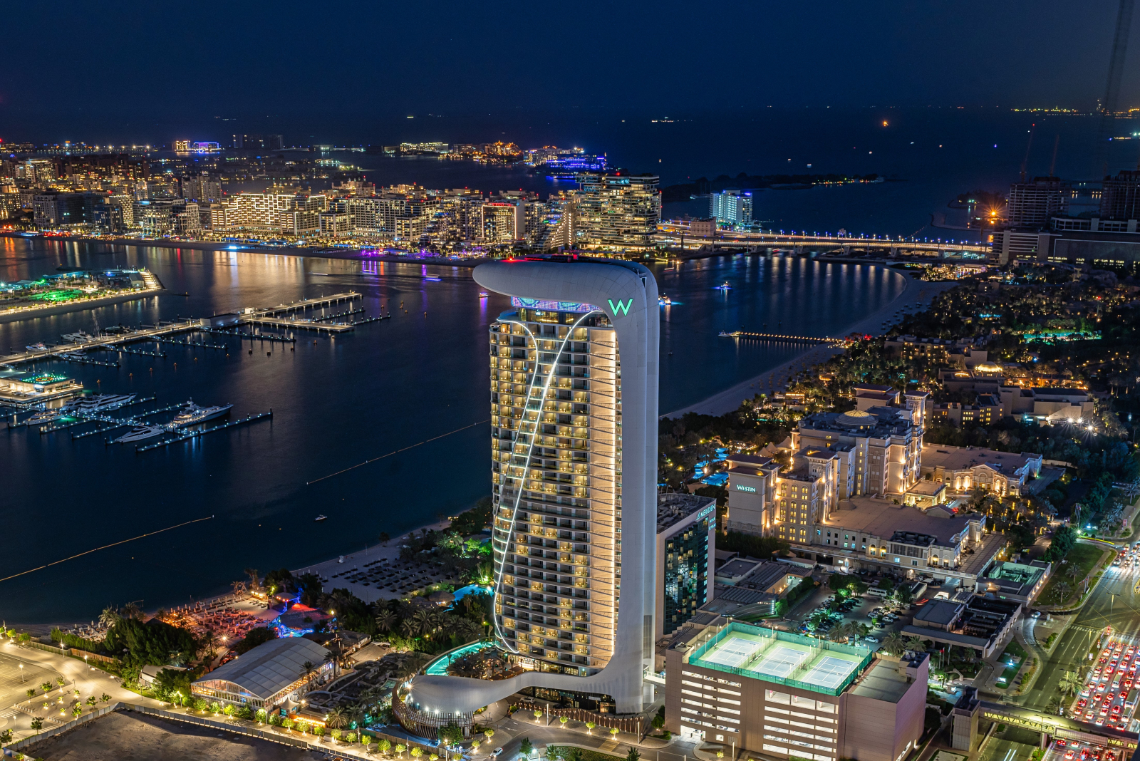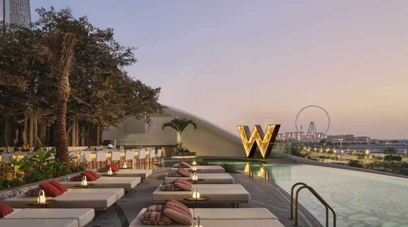Отель входит в сеть W Hotels корпорации Marriott International и рекомендован путеводителем Forbes Travel Guide. Его 31-этажное здание со сверкающим фасадом и оригинальной архитектурой, спроектированное бюро Aedas Architects, стало узнаваемой частью панорамы побережья. Дизайн интерьеров от студии BLINK Design Group представляет собой современную интерпретацию арабской культуры с использованием декоративных сундуков, шёлковых ширм, мраморной мозаики и марокканских светильников.